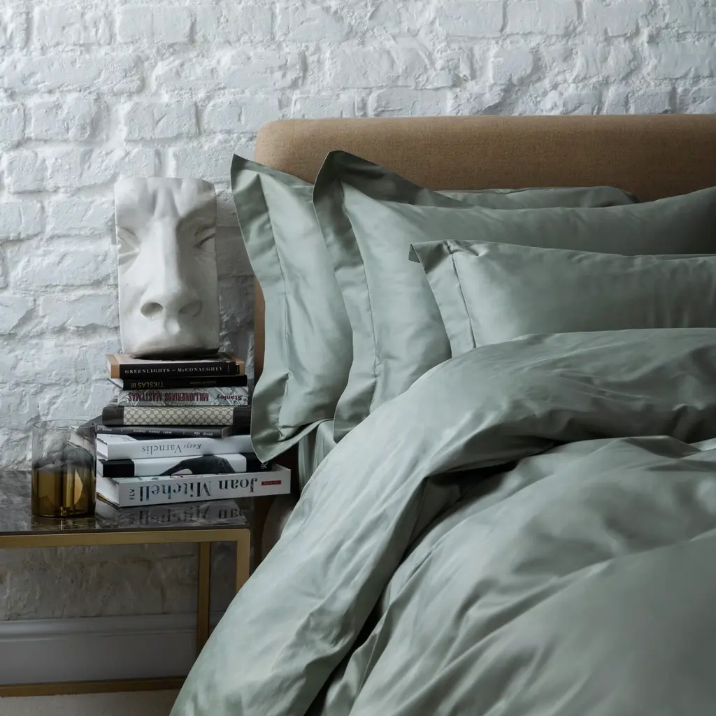 Sateen Bed Linen Set Solid Salvia Uk King, Us Queen