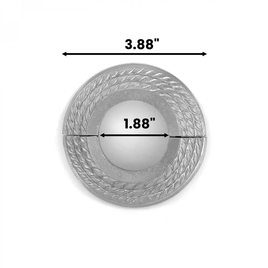 SATIN FINISH COATED ALUMINUM RADIATOR PIPE FLANGE COLLARS Cover your hideous pipes with these tarnish resistant Satin finish coated Aluminium Radiator Flanges. The simple and industrial 'Triple Roped ' design complements traditional and contemporary decor. These Radiator Flanges will bring your house or store a Loft Retro charm. FEATURES - Measures 3-7/8 O.D and 1-7/8 I.D. - Easy to assemble, just snap-in both pieces together around the radiator pipe - Replace old and worn out radiator flanges with these tarnish and rust resistant decorative radiator flanges - Satin brass finish for a luxurious finish - Maintenance free - Not like those Cheap flanges - Use flanges slightly larger (I.D.) in dia. than your pipe - The IPS (Iron Pipe Size) is 1-1/2 100% SATISFACTION GUARANTEE These are carefully wrapped to avoid any damage in the transit process. Renovators Supply Manufacturing offers you great value products for your money and a perfect way to spend wisely. We also provide 30 days guarantee with no fee.