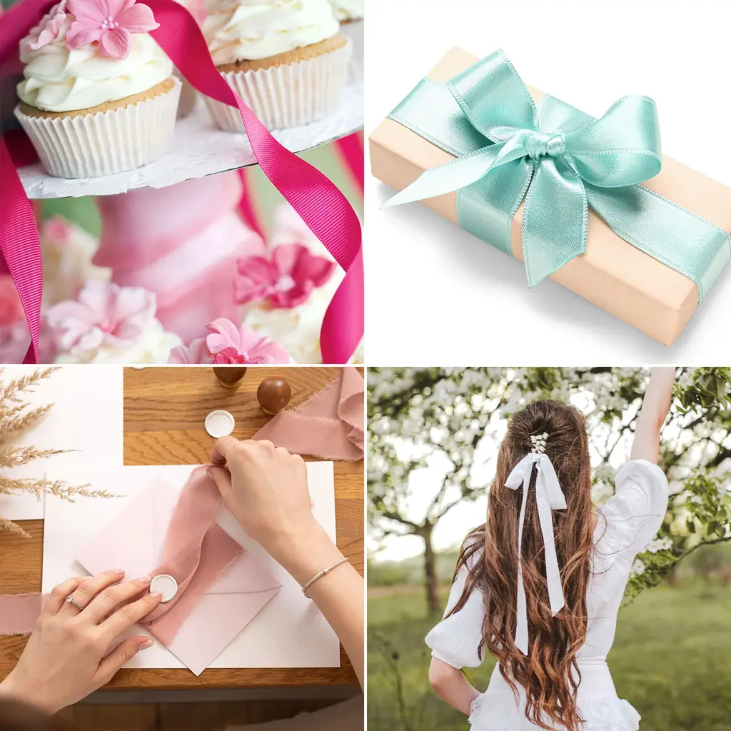 PRODUCT APPLICATIONSWhether pink satin ribbon is a romantic decoration at a wedding, a warm package for holiday gifts, or daily DIY about sewing, hanging ornaments, gift making, card making and home decoration.PRODUCT DETAILS & INCLUDE√ Material: Polyester√ Color: Pink/Army Green/Light Green/Blue/Dark Blue/Light Blue/Gray√ Overall Size: 3.8 cm/1.5 inches X 50 Yards/Spool√ Package Includes: 1Pcs X Ribbon For Gift Wrapping PRODUCT ADVANTAGES1.The bow ribbon is made of silky polyester, it has a smooth and lustrous surface and is not prone to wrinkling, shrinking or fading. It is easy to use for making delicate bows or crafts.2.There are a variety of colors to choose from, providing you with unlimited creative possibilities. Bright and lively, pure and beautiful color. The ribbon for flower bouquet can add an indispensable atmosphere to festive decorations and gift packaging.3.The silk ribbon 1-1/2 inch can be cut at will, enough to meet all your needs from small crafts to large decorative projects.ATTENTIONConfirm the size and color of wrapping ribbon before ordering.