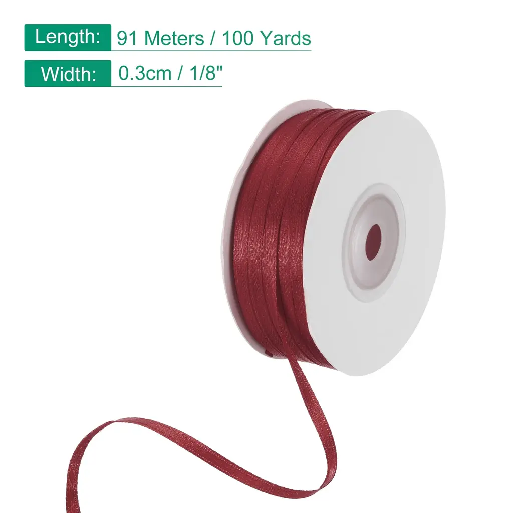 Dimensions: The double face solid color ribbon is 1/8 inch (0.3cm) wide, comes in a convenient 100 yards (91 Meters) package, giving you plenty of space for decorating, and is long enough to suit your needs.Silky Ribbon: The satin ribbon is made of quality polyester, with a smooth, soft, silky and shiny surface without any wrinkles, giving you a good texture.Wide Application: Especially suitable for handmade bows, crafts, gift packaging, invitations, floral designs, holiday and party decorations, baking packaging, bouquet ribbons, crafts, and more creative design.Applicable Occasions: birthdays, weddings, party decorations, Thanksgiving, Halloween, Christmas, New Year gifts, and family gatherings, celebrations, etc.Note: Due to the light and screen setting difference, the color of the item may be slightly different from the pictures.Specification:Material: PolyesterSize: 0.3cm x 91 Meters / 1/8 Inch x 100 Yards(W*L)Package Content: 1 Roll x Satin Ribbon