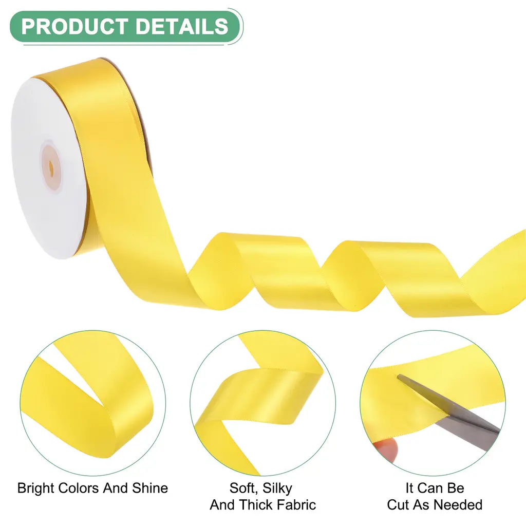 Satin Ribbon 50 Yards 1-1/2" Wide Polyester Fabric Ribbon Decoration - Yellow