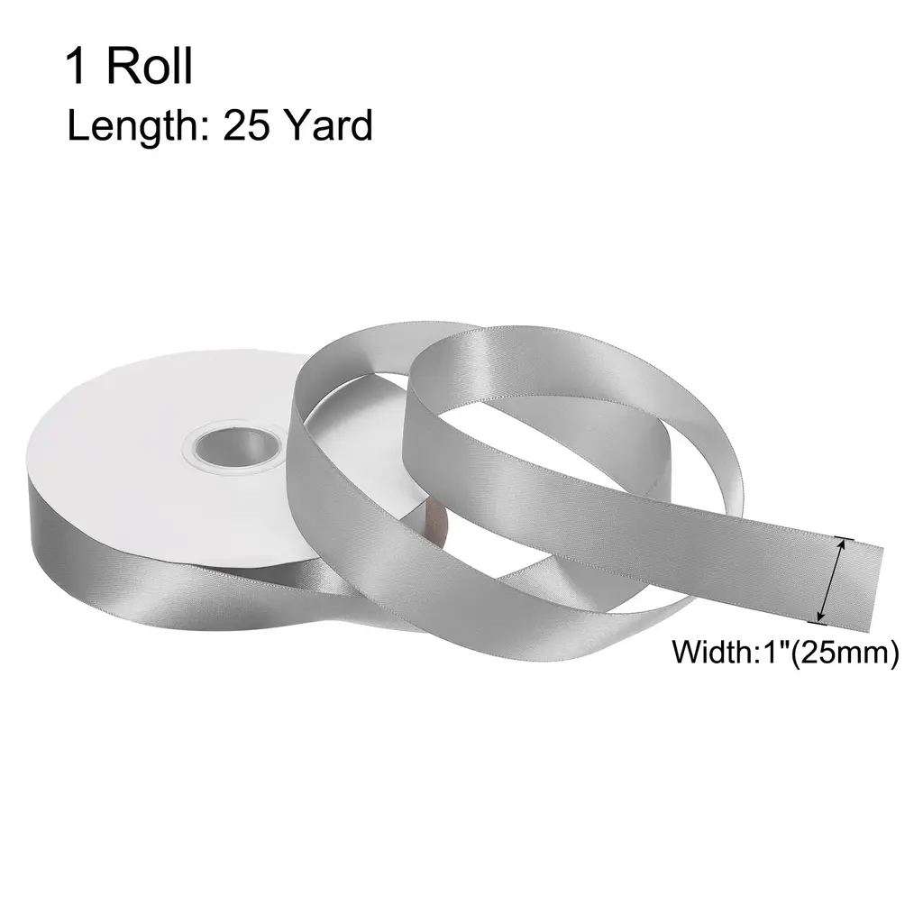 Satin Ribbon Grosgrain Valentine Solid Double Face Wedding Ribbon - Black - 1" X 25 Yard