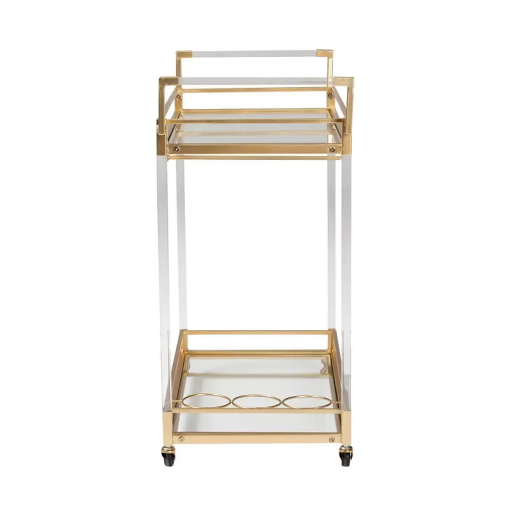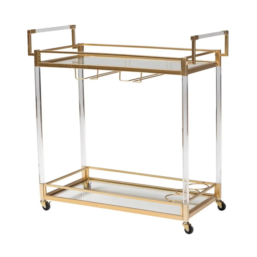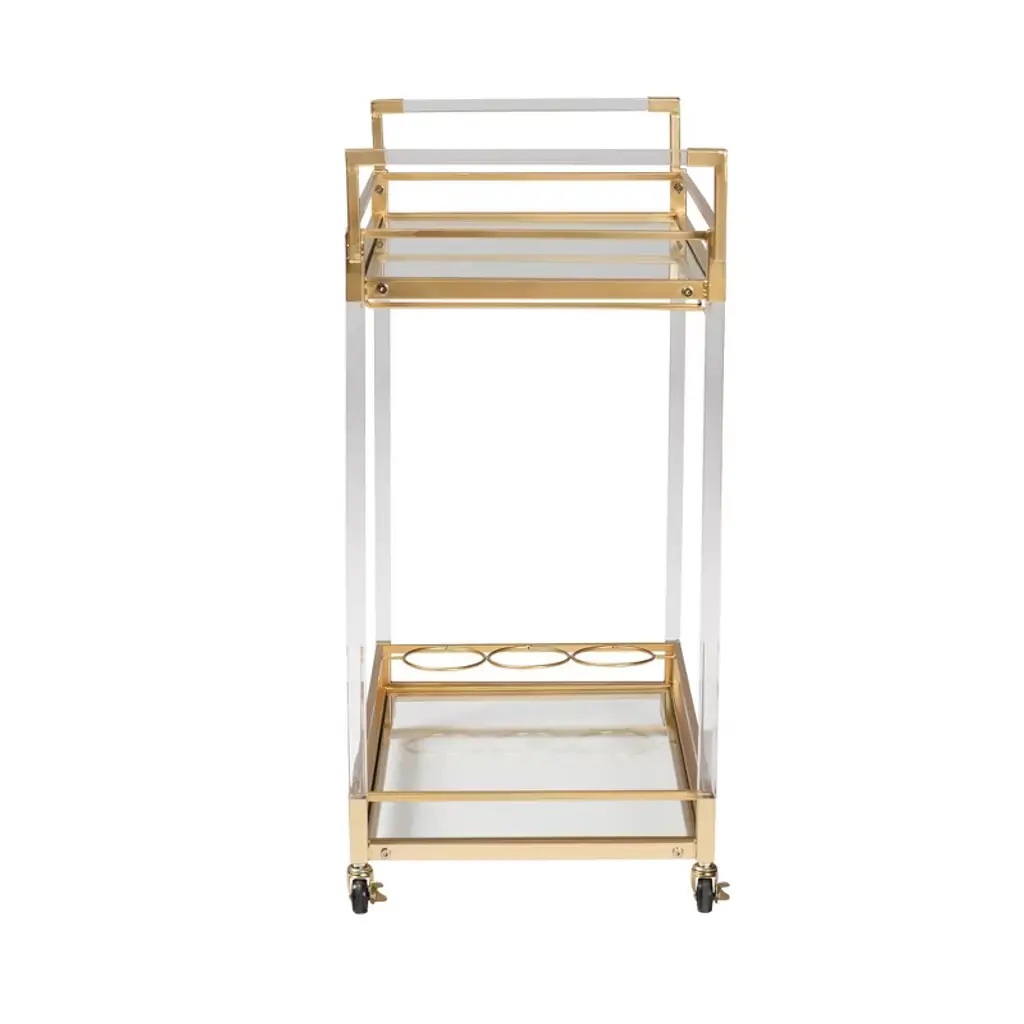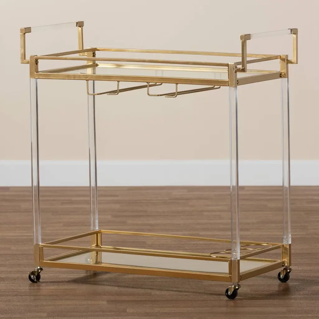 Savannah Metal And Glass Wine Cart Gold/clear - Baxton Studio