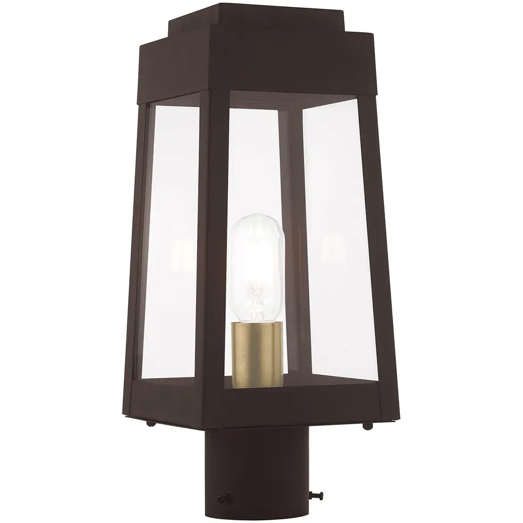 Boost your curb appeal and create a great first impression with the Craftsman-inspired style of the Savoy House Denver 1-light outdoor post mount lantern. Clear seedy glass and a matte black finish make Denver a great choice for lighting up today's fashionable homes. This fixture is 19" in height and 10" in width. It uses one standard size bulb with a max of 60 watts. Wet area rated.