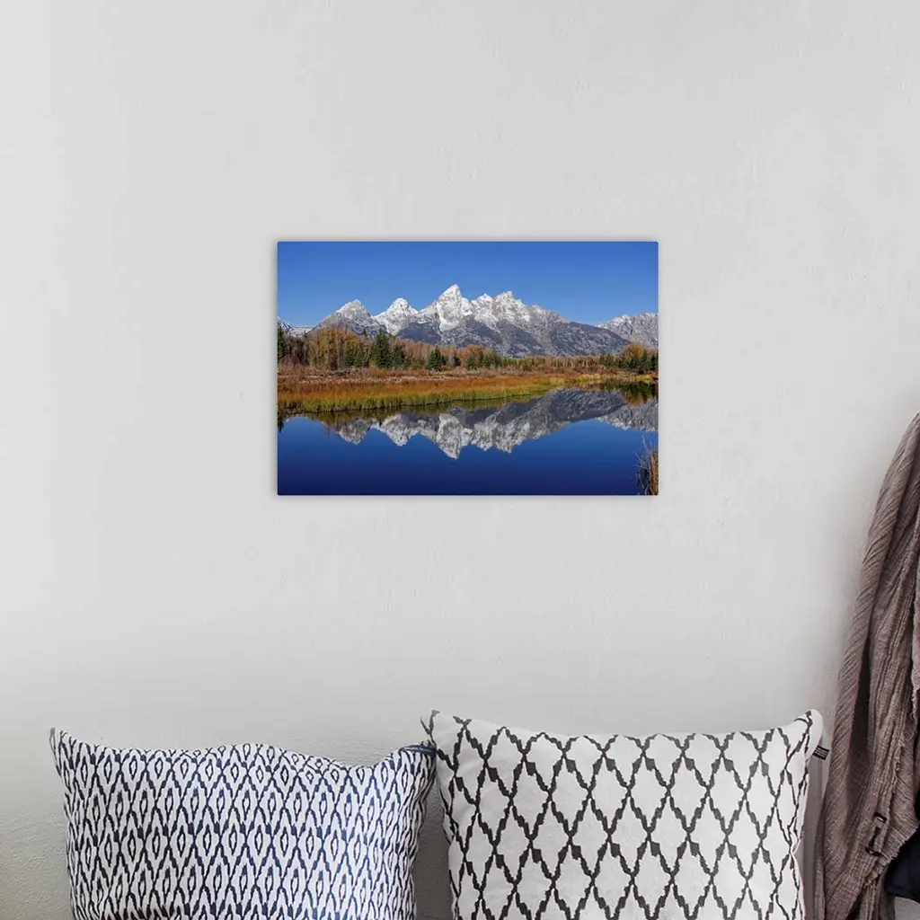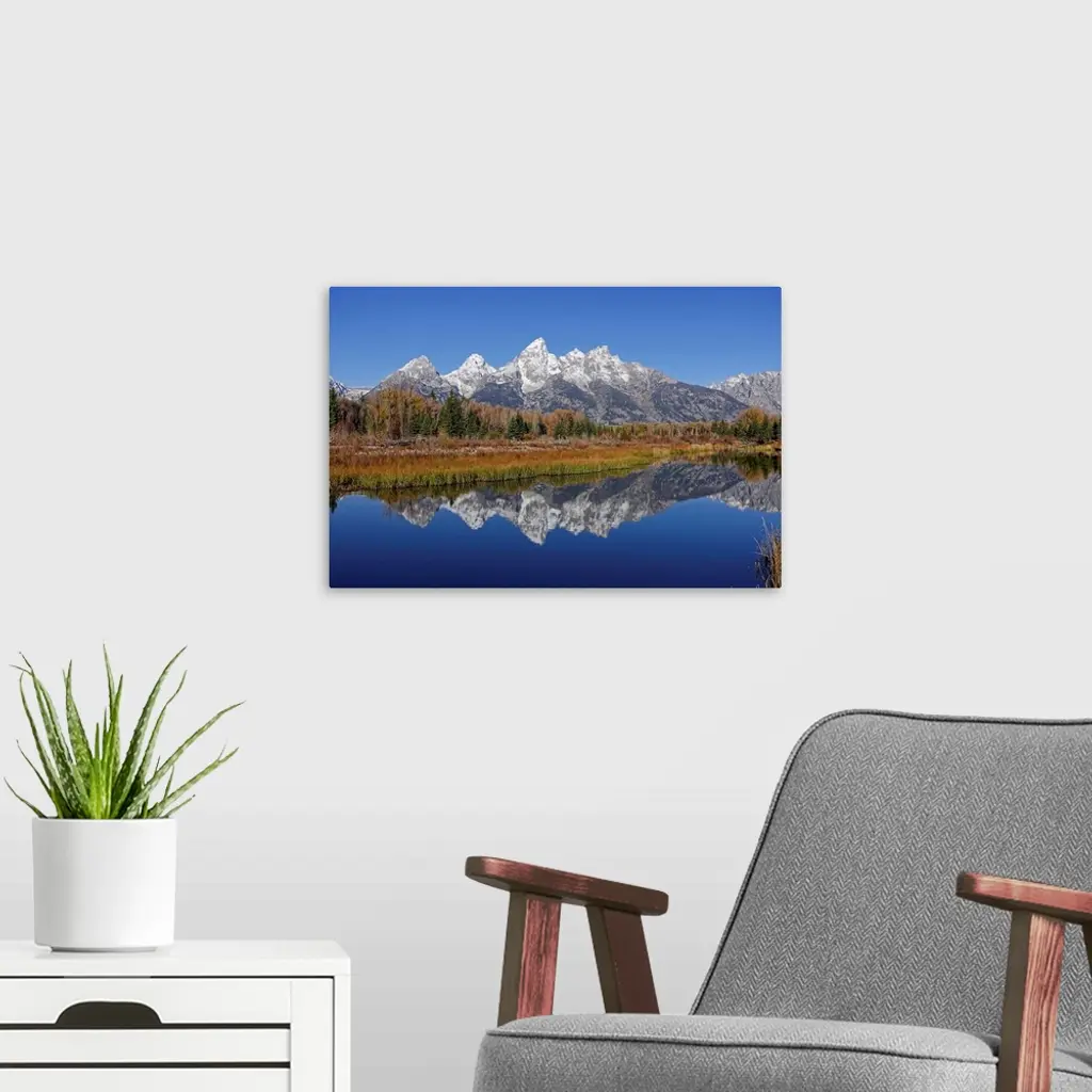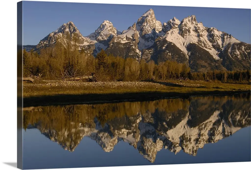 The Grand Tetons reflected on the Snake river near Jackson, Wyoming.