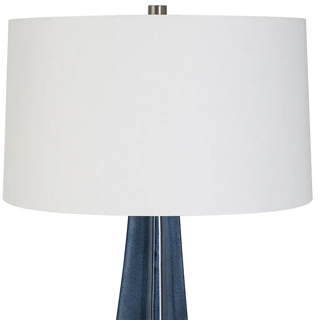 Scalloped Table Lamp With Tapered Shade - 32" - Blue - Blue