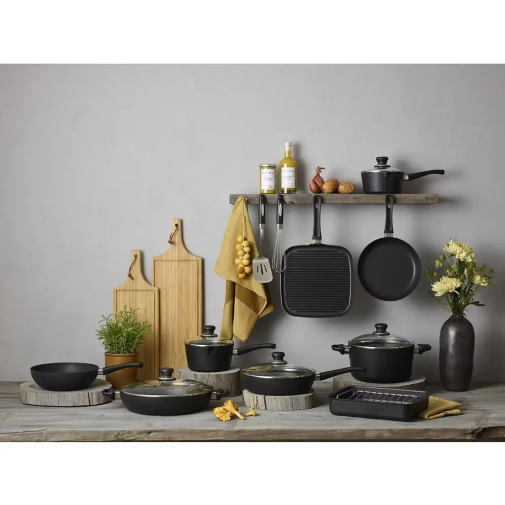 The Scanpan Classic 12.5-Inch Wok is ideal for high-heat cooking like stir-fries, sautéed vegetables, and quick one-pan meals. Its nonstick ceramic coating ensures smooth food release with little oil, while the pressure-cast aluminum body provides even heat across the surface. With tall, sloped sides and a wide cooking base, it’s great for tossing and serving. Oven safe up to 500°F and made in Denmark.