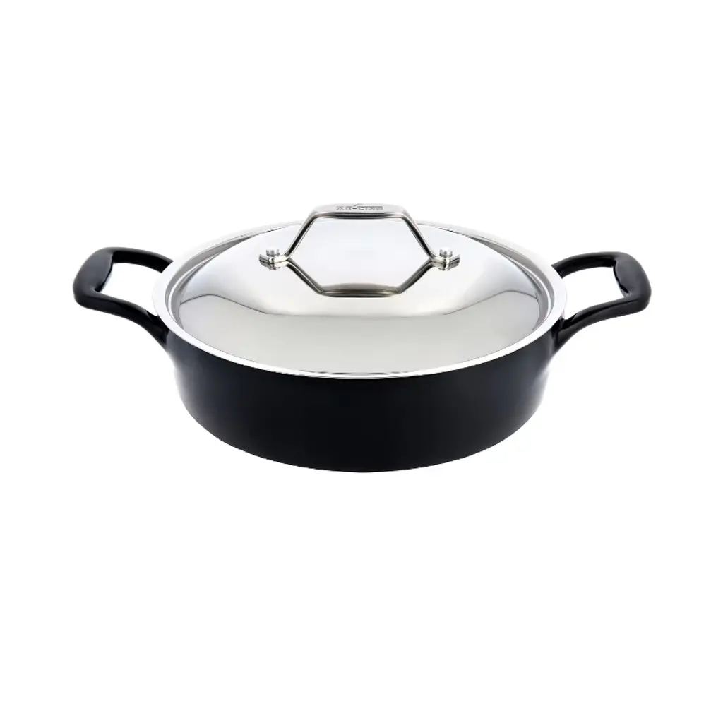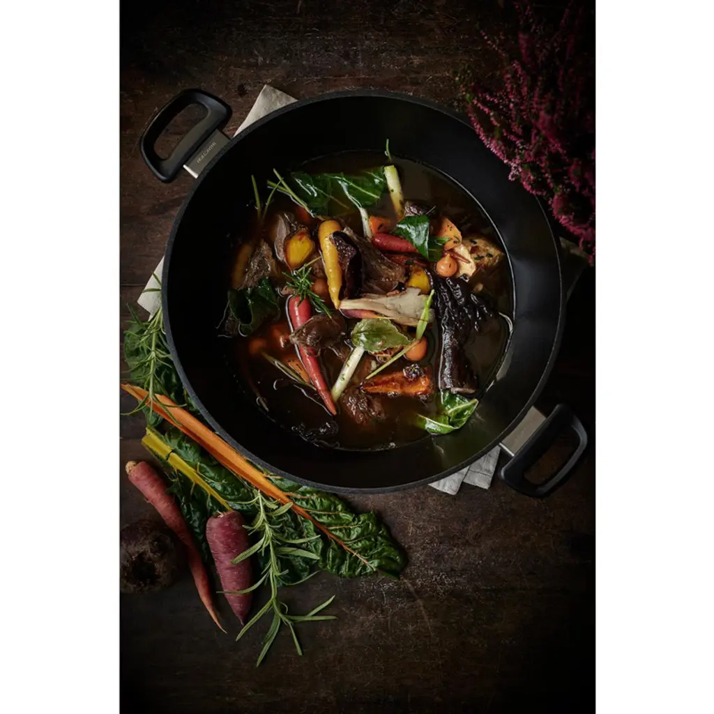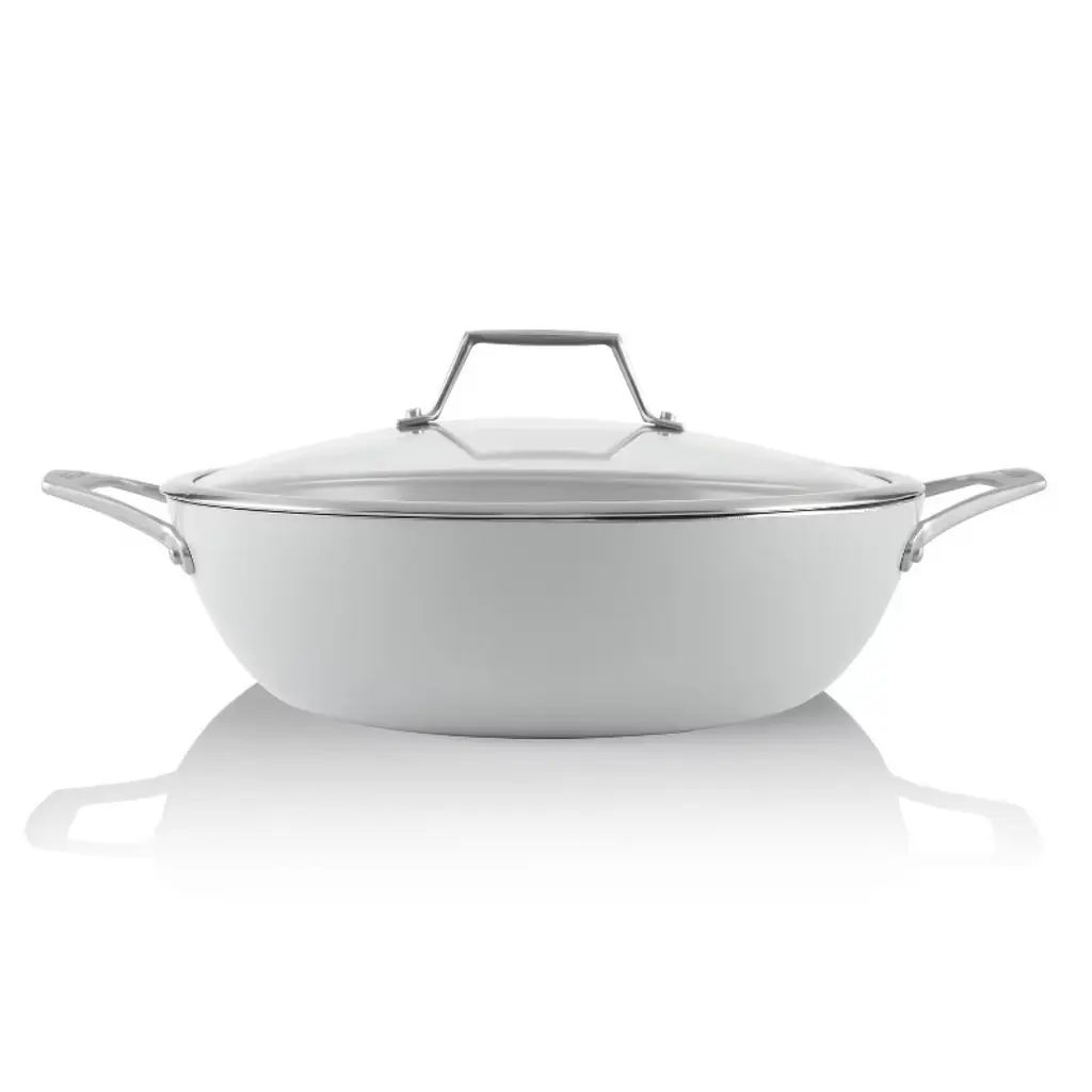 The Scanpan Classic 8.25 Quart Casserole & Stew Pot with Lid is your go-to for slow-simmered stews, braised meats, or big batches of soup and pasta. Its spacious 12.5-inch width and tall sides make it ideal for large families or meal prep. The nonstick surface ensures easy food release, and the squeeze-cast aluminum body provides even heat. Comes with a tempered glass lid and is oven safe to 500°F. Made in Denmark.