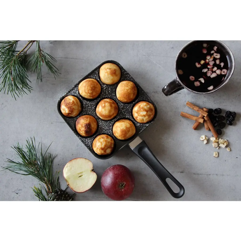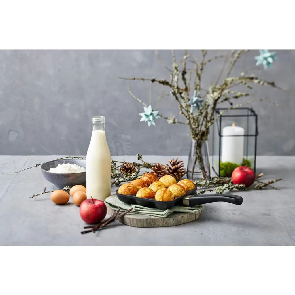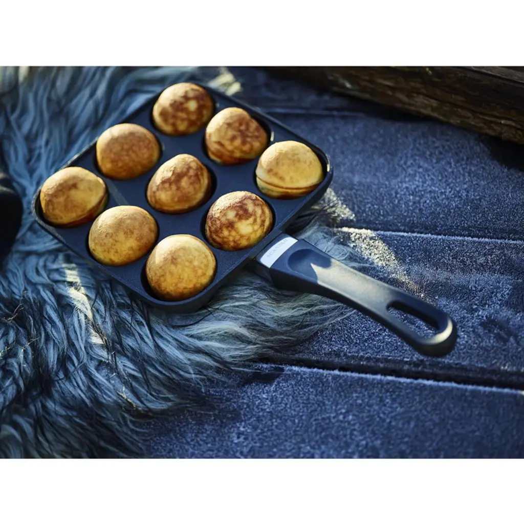 The Scanpan Classic Aebleskiver Puff Dumpling Pan is designed to help you create perfectly round, traditional Danish aebleskiver with ease. Made in Denmark from 100% recycled aluminum, this pan offers exceptional heat distribution for consistently golden-brown results. The Stratanium nonstick surface ensures effortless food release and easy cleanup, making cooking and flipping these delicious puffed dumplings a breeze. Whether preparing sweet or savory versions, this durable and easy-to-clean pan is perfect for enjoying authentic Danish treats at home.