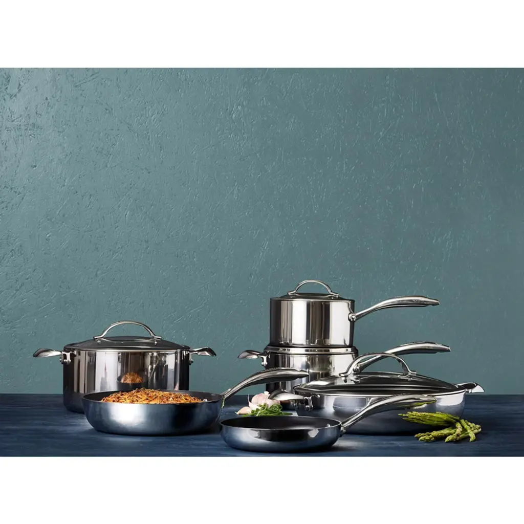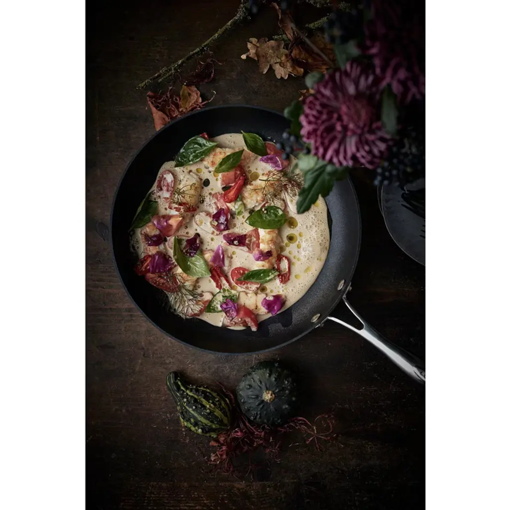 The Scanpan HaptIQ 2.75 Qt. Covered Sauté Pan combines nonstick performance with professional-grade stainless steel construction. Perfect for sautéing, simmering, or braising, it features a Stratanium+ nonstick surface that allows for easy food release and safe use with metal utensils. The 5-layer body heats evenly, and the tempered glass lid traps moisture while you cook. Induction compatible and oven safe up to 500°F. Made in Denmark.