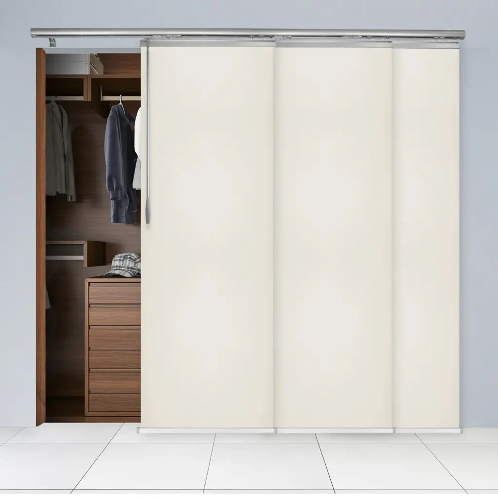 Central Design Products is pleased to introduce a new innovative panel track that offers easy 2-way installation, adding an alluring style and refined touch to your home decor. The single rail design of the track is sleek, compact, and reduces the overall footprint and weight of the installation, eliminating bulky, intrusive window treatments. Adjusting the panel height is a breeze � simply trim the panel, re-attach the liner, and install the panel weight. Detailed instructions are included.The panel track also features a patented slider design, made with aluminum and fitted with bearings that allow for durable and smooth operation. The sliders are stacked closer together than conventional panel tracks, reducing light bleed coming from the gaps between panels. This track has endless uses from dividing rooms, garages, offices, and closets to decorating windows and patios. Available in larger sizes including 8, 10, and 12 panels. Extends from 36-66� wide. Each panel measures 23.5" wide and 91.5" tall, with a total installation height of 94" (includes the 2.5" rail track). The track can be wall or ceiling mounted. The panels can stack on the left or the right. The clearance from the wall is extendable from 1.25� to 3.25� and projection from the wall is extendable from 3� to 4.25�. Scarlet panel is made from 70% Polyester 30% Acrylic, with a blackout shade.