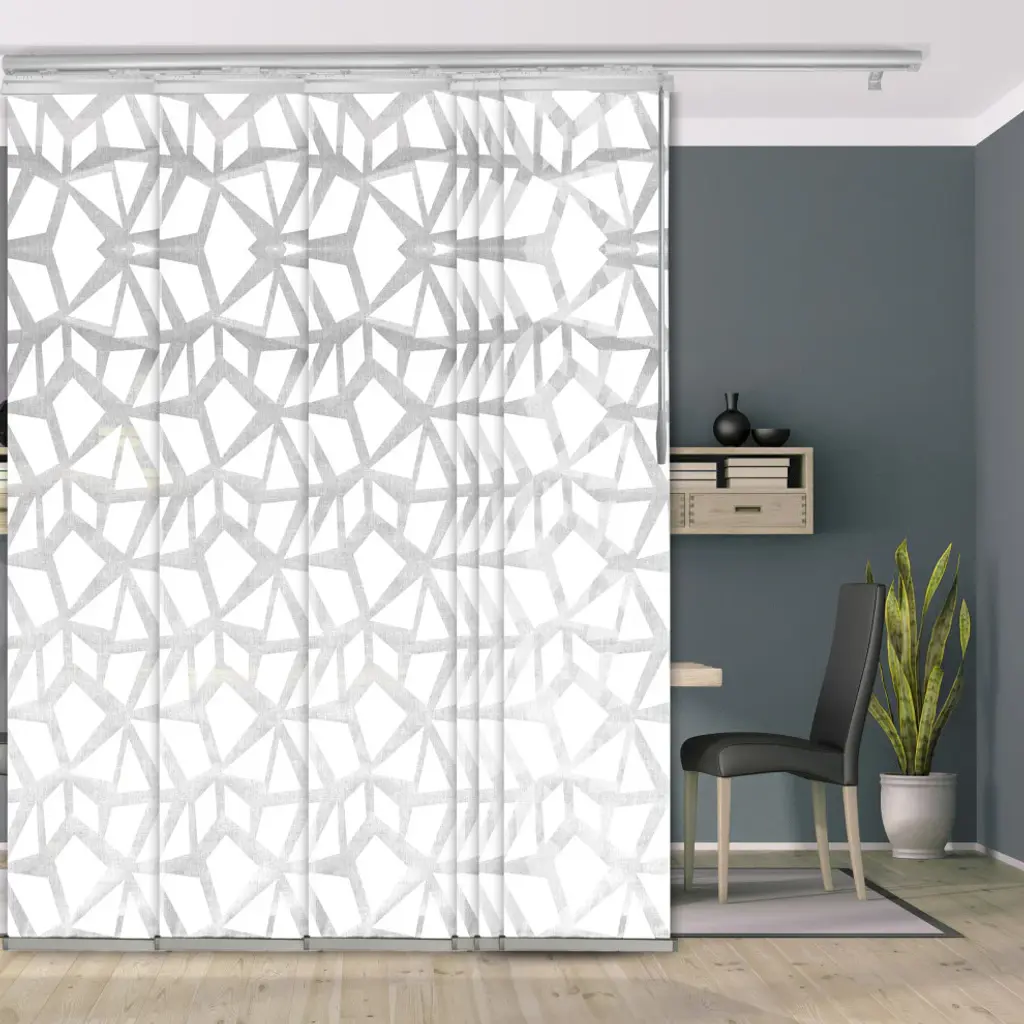 Central Design Products is pleased to introduce a new innovative panel track that offers easy 2-way installation, adding an alluring style and refined touch to your home decor. The single rail design of the track is sleek, compact, and reduces the overall footprint and weight of the installation, eliminating bulky, intrusive window treatments. Adjusting the panel height is a breeze � simply trim the panel, re-attach the liner, and install the panel weight. Detailed instructions are included.The panel track also features a patented slider design, made with aluminum and fitted with bearings that allow for durable and smooth operation. The sliders are stacked closer together than conventional panel tracks, reducing light bleed coming from the gaps between panels. This track has endless uses from dividing rooms, garages, offices, and closets to decorating windows and patios. Available in larger sizes including 8, 10, and 12 panels. Extends from 98-130� wide. Each panel measures 23.5" wide and 116" tall, with a total installation height of 118.5" (includes the 2.5" rail track). The track can be wall or ceiling mounted. The panels can stack on the left or the right. The clearance from the wall is extendable from 1.25� to 3.25� and projection from the wall is extendable from 3� to 4.25�. Scattered panel is made from 100% Polyester, with a light filtering shade that blocks 50% of the light.