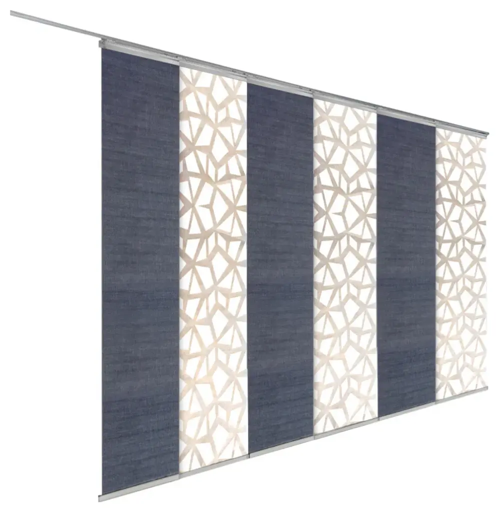 Central Design is pleased to announce the newly designed Panel Track, easily used as 2-way Vertical Blinds or Room Divider. Distinguished winner of the "2020 Good Design Award and 2021 MUSE Design Awards". Total Width is adjustable from 98-130". Individual Panel Size: 91.5" Height x 23.5" Wide. Overall Height including rail track is 94". The height of the Panel is adjustable by simply trimming the Panel and re-attaching the Liner and Panel Weight (Instructions provided). Wall or Ceiling mountable for versatility in its set up. Clearance (wall to the the back of Panel Track): extendable from 1.25"-3.25". Projection (wall to the furthest point): extendable from 3"-4.25". Single Rail Patented design; 1.25" thick for a very slick, thin, and compact design. No more bulky rail set ups. Made of steel for a durable and smooth operation of the Panels. Different from your standard panel track in that the sliders are designed in a more compact, overlapping fashion to reduce light bleed coming from in between the Panels. Track Material: steel. Panel Material: Polyester.More Panel Track sizes available & sold separately; 3-panel, 4-panel, 5-panel, 6-panel