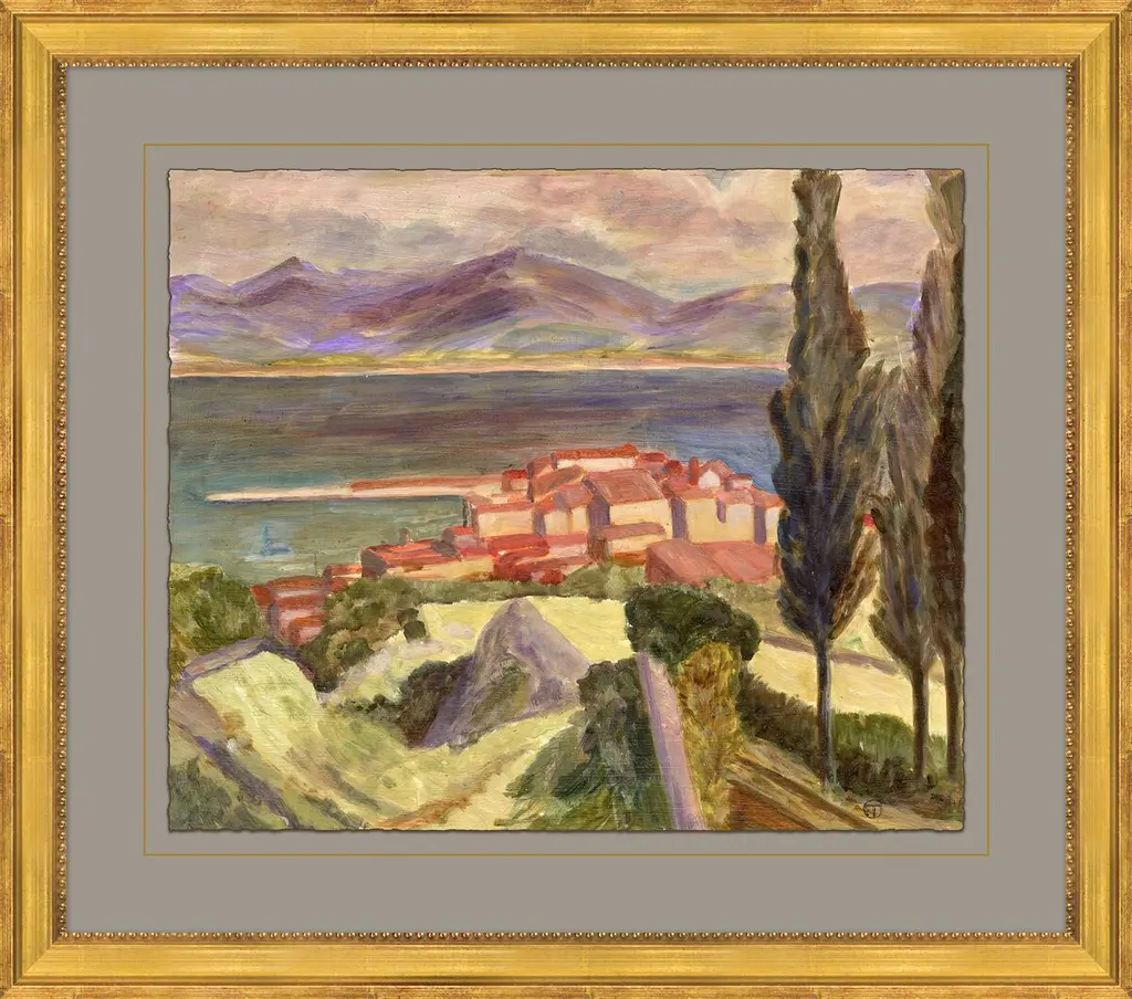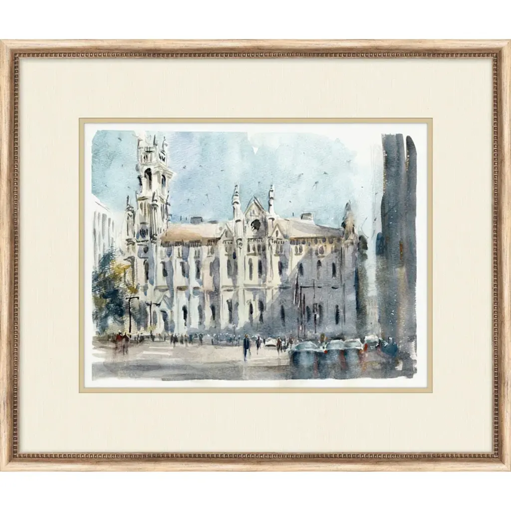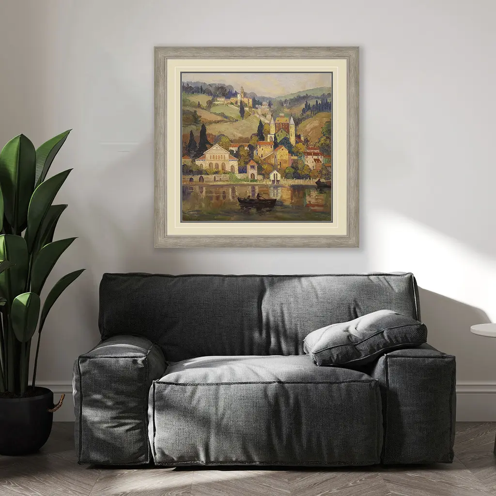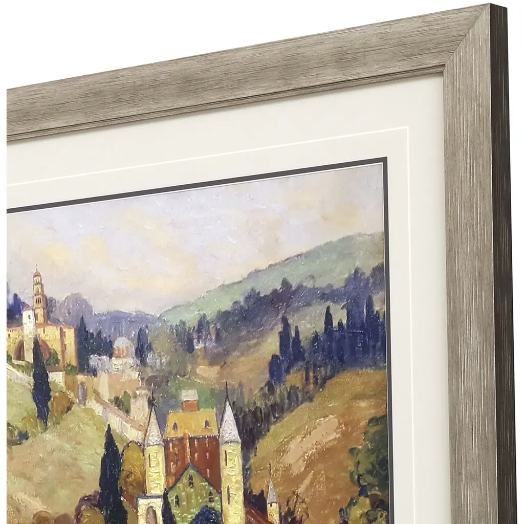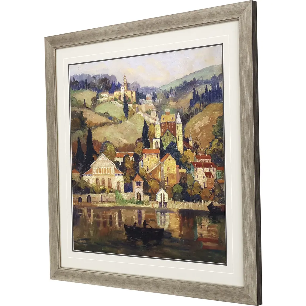 The beauty of Florence along the Arno River is captured in stunning color. Matted in sand and framed in a distressed silver finish moulding.