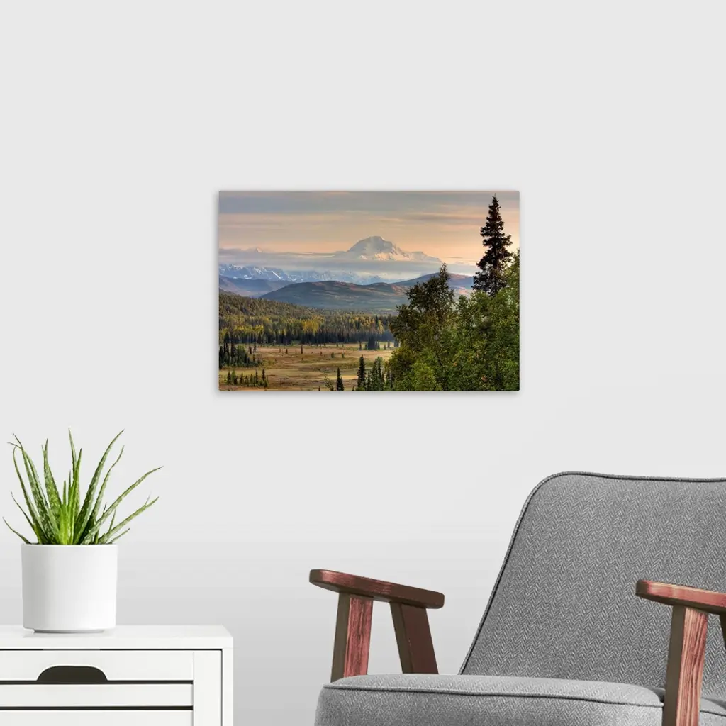 Scenic view of Mount McKinley, Alaska wall art for home and office decor. Discover canvas art prints, photos, mural, big canvas art and framed wall art in GreatBigCanvas.com's varied collections.