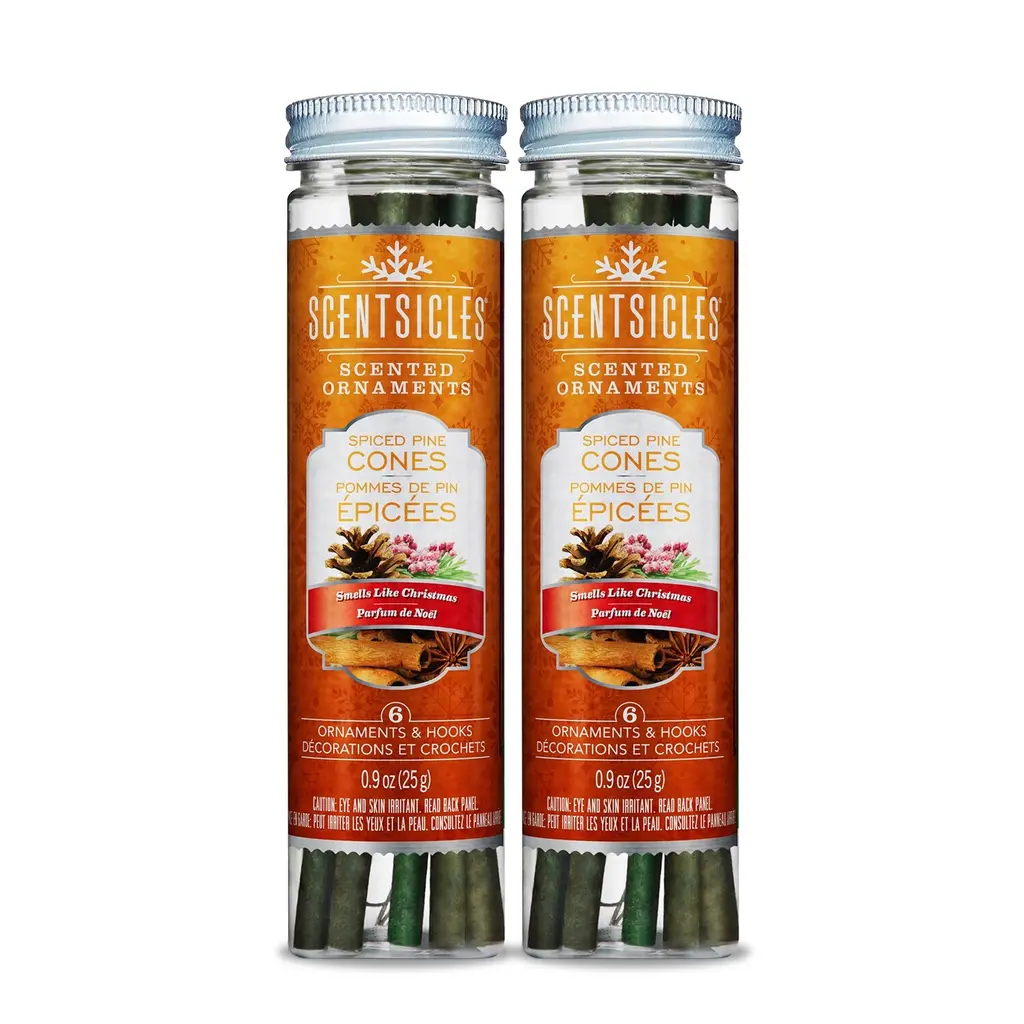 NEW Autumn 'n Apples scent with the Scentsicles signature Real, Fresh-Cut scent. It's a crisp, but calming apple scent mixed with warm clove, bright citrus, and sweet woodiness. Inspired by a cool, sunny day at the apple orchard, hayrides under a bright blue sky, running through corn mazes, biting a newly ripe apple straight from the tree in one hand, and holding a mug of hot, spiced cider in the other. Better-than-ever Two Dashes of Cinnamon now with more Real, Fresh-cut (or fresh-ground) scent. That cherished and comforting scent straight from gran's kitchen - unmistakably pure cinnamon with an almost peppery tingle and a sweet finish. Inspired by cookies, pies and cinnamon rolls just out of the oven, feeling full and sleepy after a yummy dessert, and staring out the window at the leaves falling. It's Cinnamon time!Bundled with our improved Spiced Pine Cones fragrance, with more Real, Fresh-Cut scent than ever. That sumptuous cornucopia of warm baking spices and mulled fruit mixed with a rich blend of fir, balsam, and pine cone. Inspired by horn-shaped baskets brimming with seasonal produce, sitting down with family and friends to a lavish banquet, and gratitude for abundance in its many forms. This is the perfect scent to carry you from Autumn to Christmas.Made of sustainable paper and infused fully with pure fragrance, Scentsicles Scented Ornament Sticks bring the season to life. Just hide in real and dried botanical decor, then watch the leaves turn and fall in love with Fall all over again!