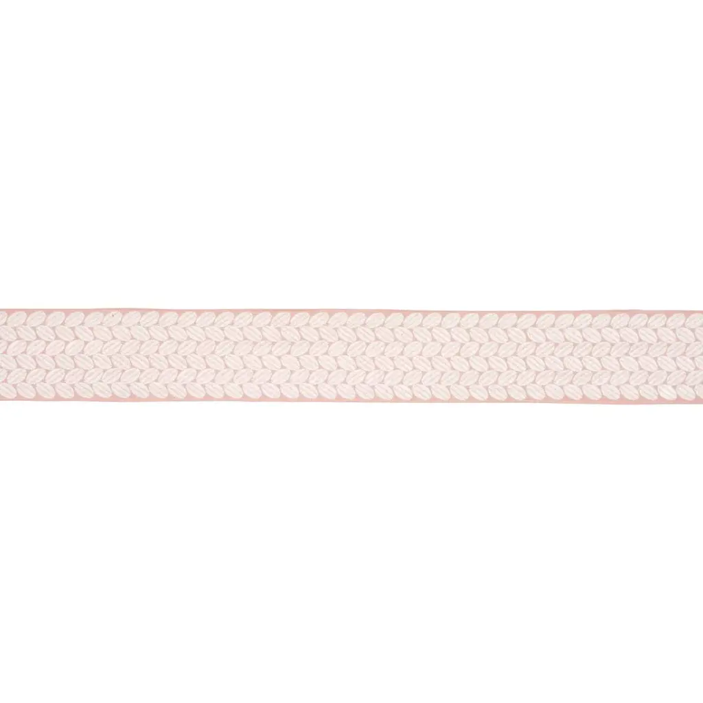 An exuberant embroidered tape with a leaf-like pattern rendered in satin stitching; inspired by a document in our archives. Sold As: 2 Yard Minimum 80% COTTON, 20% SPUN POLYSTER Horitzontal Repeat: 1" (3CM) Vertical Repeat: 5/8" (2CM) Care: DRY CLEAN RECOMMENDED