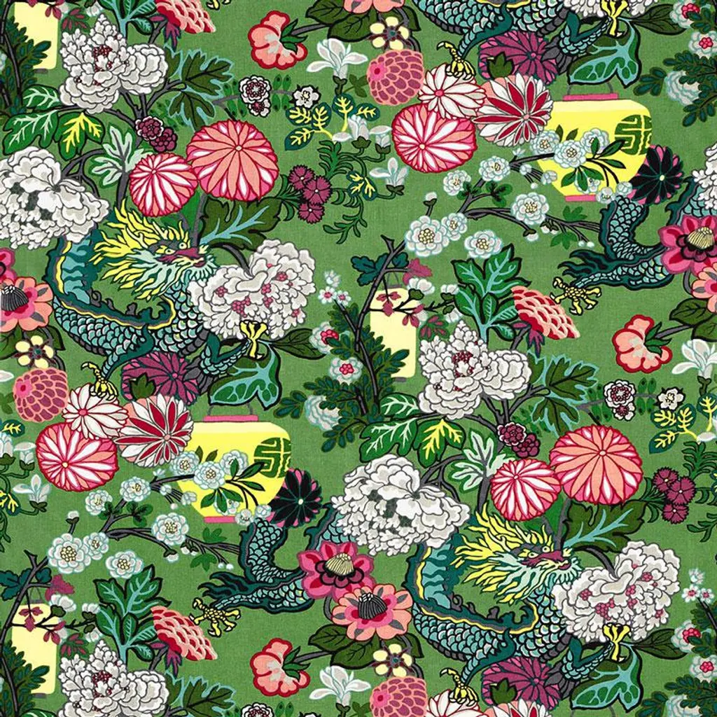 An instant hit from the moment we introduced it, this is one of our best-loved designs. The chinoiserie motif was inspired by an Art Deco print. Also available as a wallcovering. Sold as a 2-yard minimum. Horizontal Repeat 27" (69Cm) Vertical Repeat 45 1/2" (116Cm) Match Half Drop.