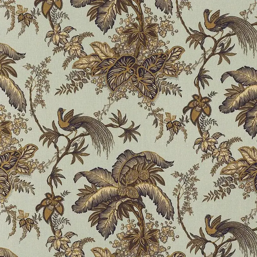 Schumacher Coconut Grove Fabric In Aqua & Tan
