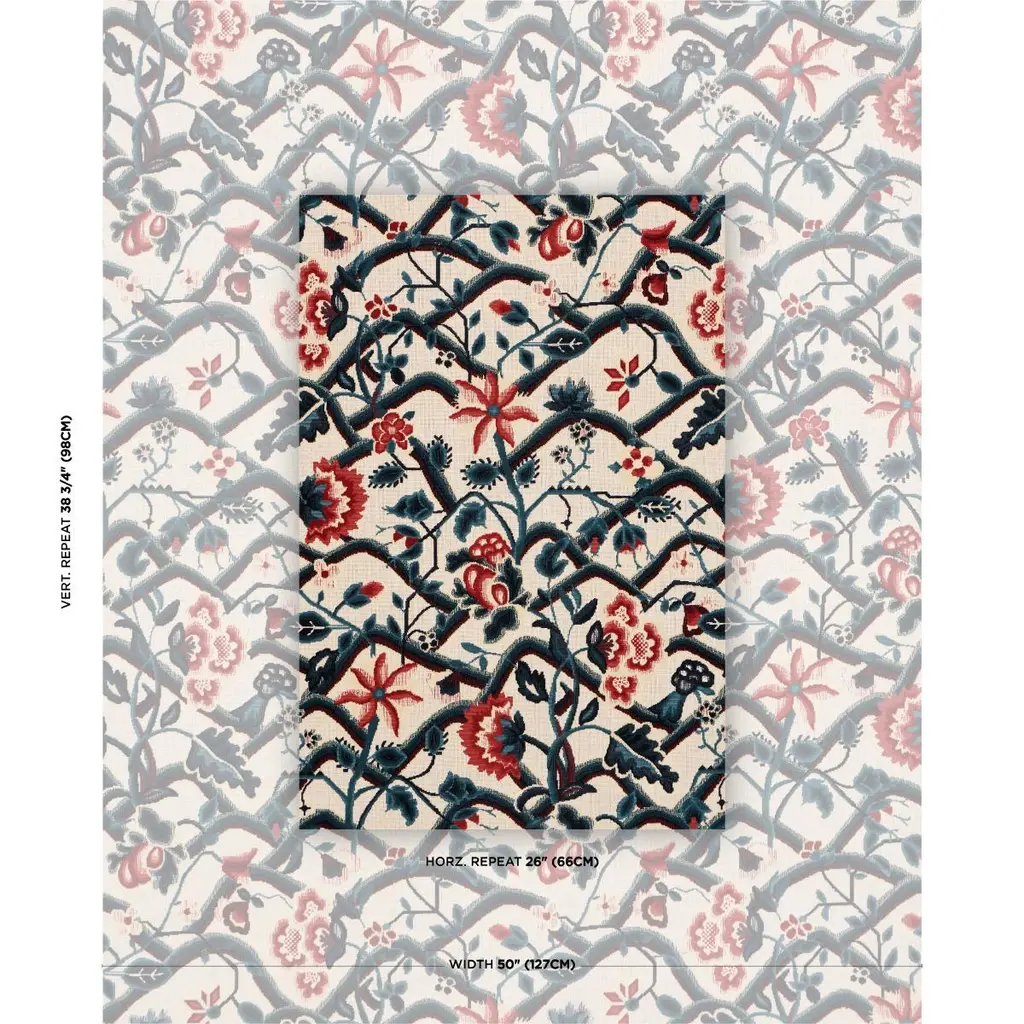 Schumacher Jacobean Garden Velvet Fabric In Cinnabar & Peacock