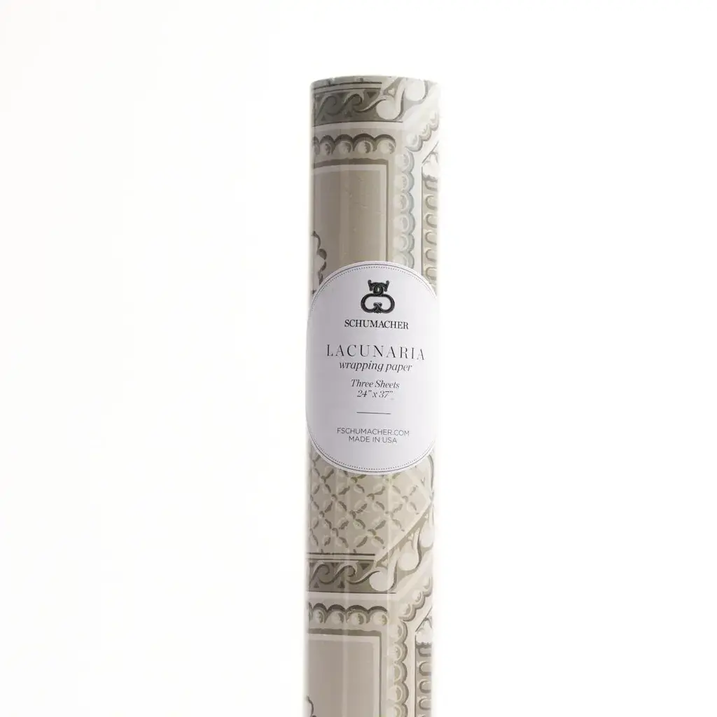 Lusciously thick, this paper creases and folds beautifully and is richly printed with Schumacher’s Lacunaria pattern. Calling to mind the coffered ceilings of McKim, Mead & White, the crisscrossing beams and stylized rosettes add a delicate flourish, creating a wrapping paper that turns every gift into something gorgeously presentable. One roll includes 3 sheets of wrapping paper, each at 37" x 24".