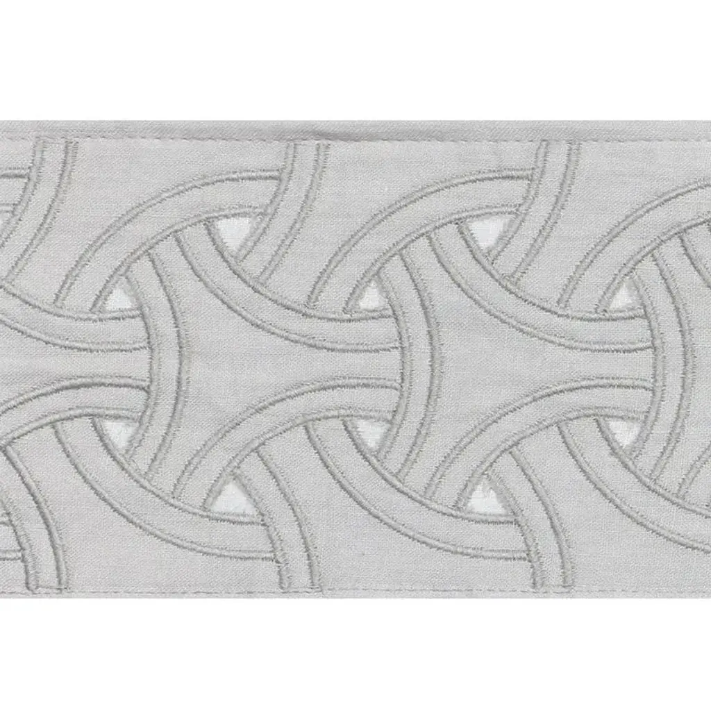Smart and stylish, this interlocking applique design adds a couture touch to upholstery, pillows or window treatments. Sold as a 2-yard minimum Content: 100% Linen Horizontal Repeat: 1 7/8" (5Cm) Match: Straight Care Instructions: Dry Cleaning Recommended