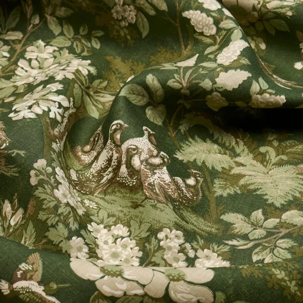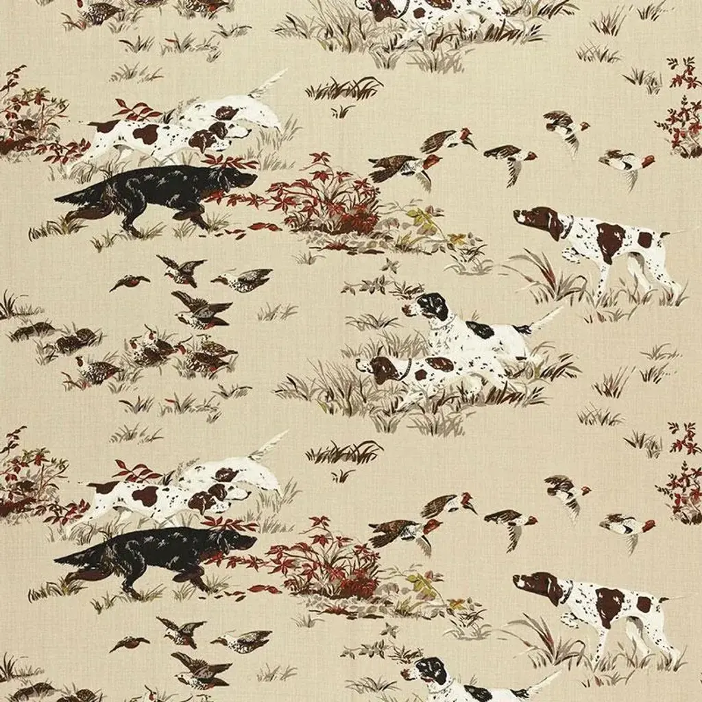 With its field dogs and fluttering quail, Pointers in yellow is a classic hunting scene that speaks to lovers of canines and country life. A painterly print on a soft, Linen ground, this fabric is suitable for upholstery, windows, or pillows, and makes a wonderful companion for other patterns. Sold as a 2-yard minimum. Content: Linen 100% Horizontal Repeat: Horz. 54" (137CM) Match: Straight Vertical Repeat: Vert. 27 1/2" (70CM) Care: Dry cleaning recommendedSold as a 2-yard minimum.
