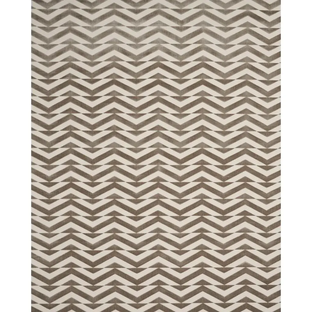 Schumacher X Miles Redd Broken Chevron Cut Velvet Fabric In Taupe On Ivory