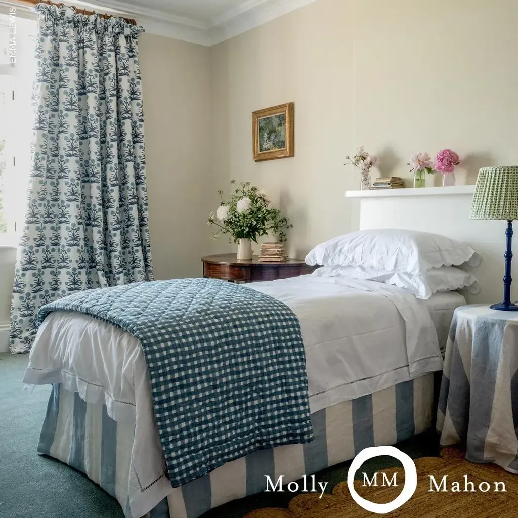 Designed in the UK and block printed by hand in India, Molly Mahon's Wide Stripe is simple, timeless and a delightful companion for florals and small geometrics. Printed on 100% linen, this medium-scale, versatile stripe has soft edges and a watery aesthetic that works beautifully for upholstery, pillows and windows. Perfectly imperfect, this fabric's subtle irregularities are intentional and the hallmarks of handcrafted design. Sold as a 2-yard minimum Care Instructions: Dry Clean Only