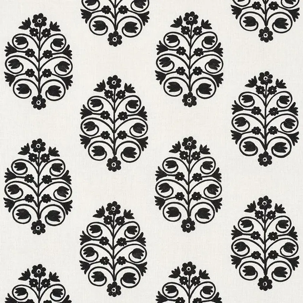 Schumacher X Vogue Living Talitha Embroidery Fabric In Black