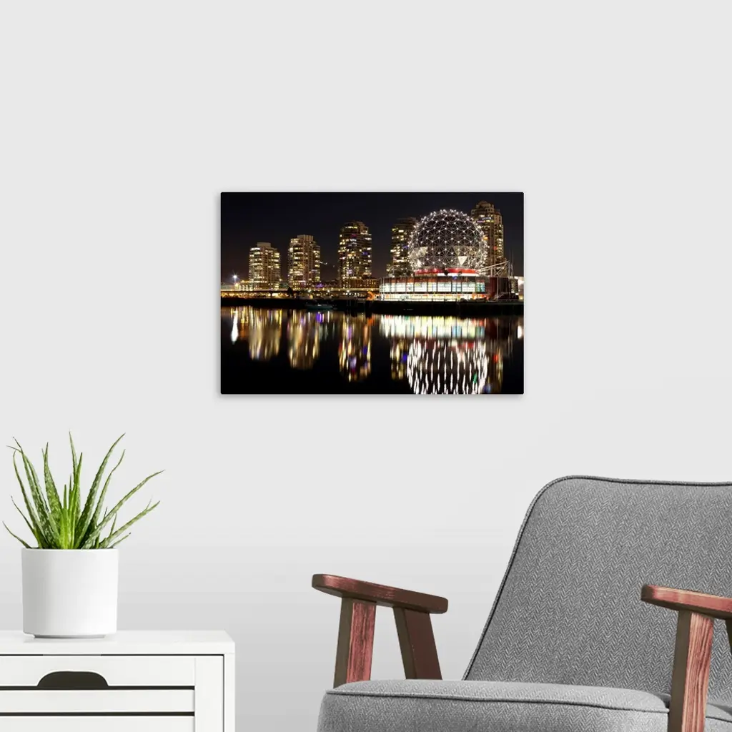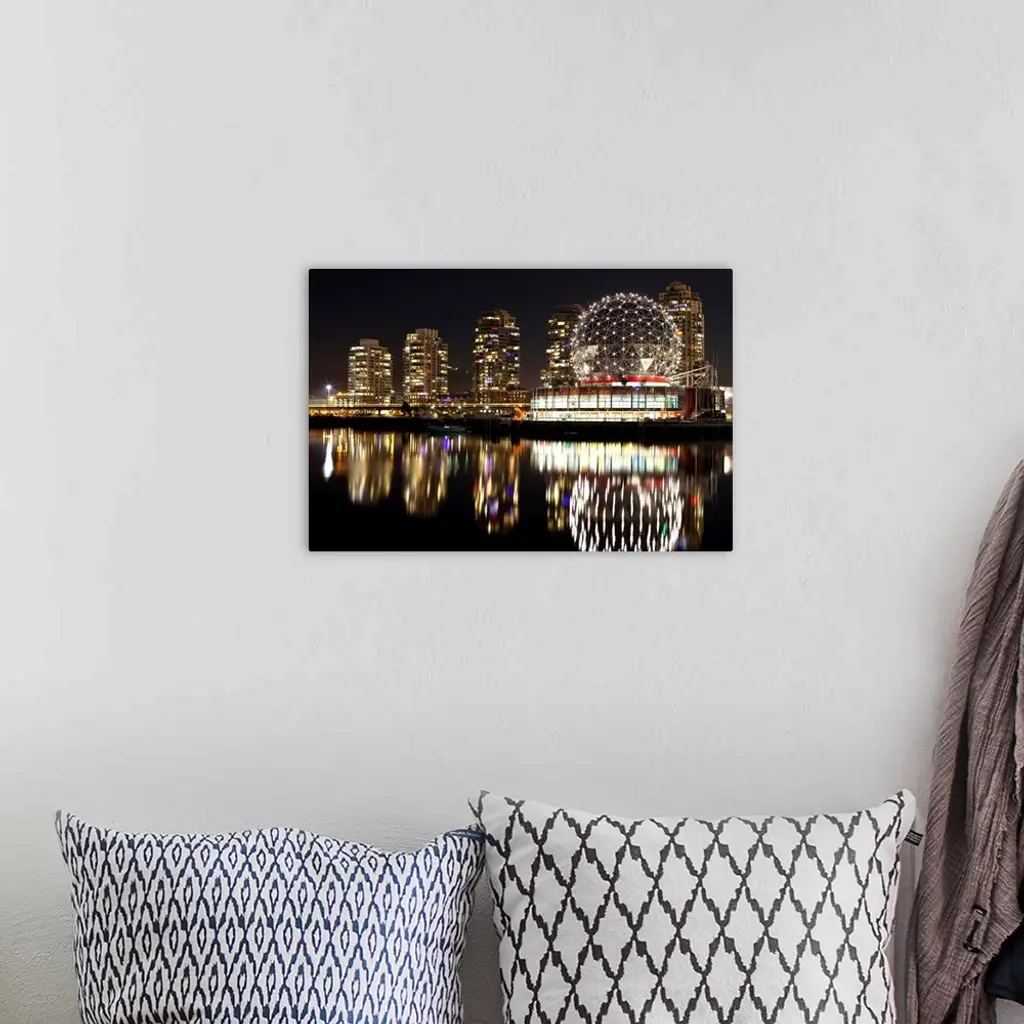 Science World lit up at night, False Creek, Vancouver, British Columbia, Canada wall art for home and office decor. Discover canvas art prints, photos, mural, big canvas art and framed wall art in GreatBigCanvas.com's varied collections.