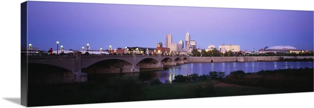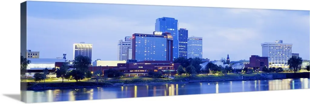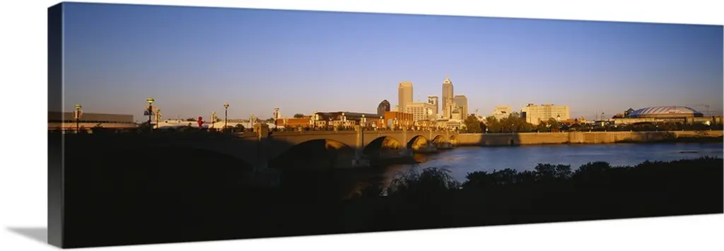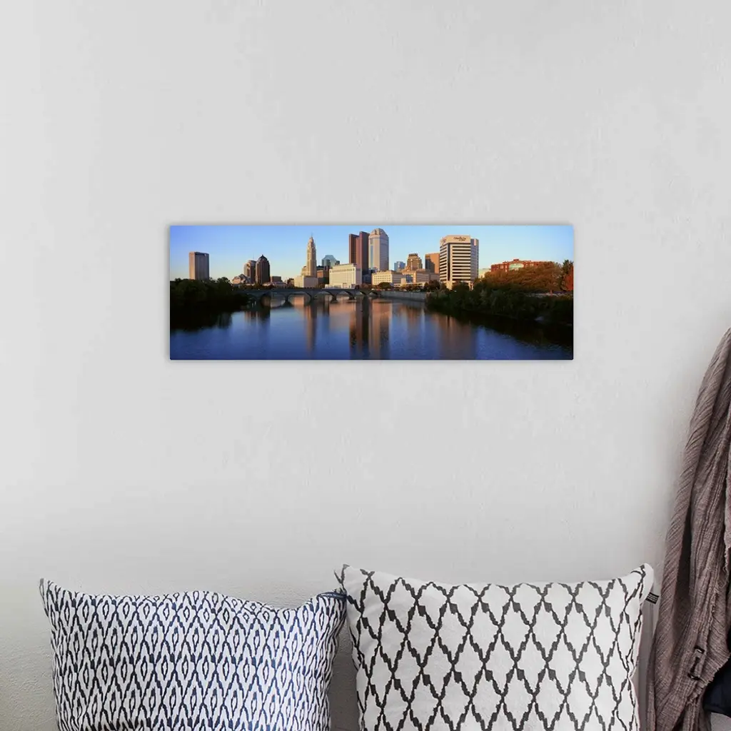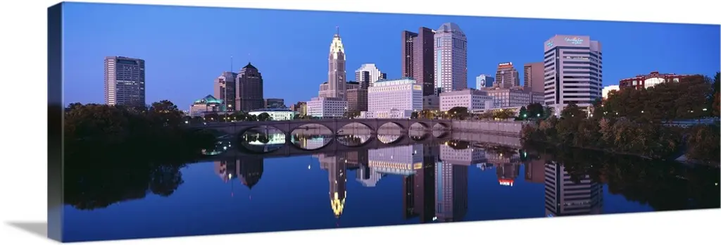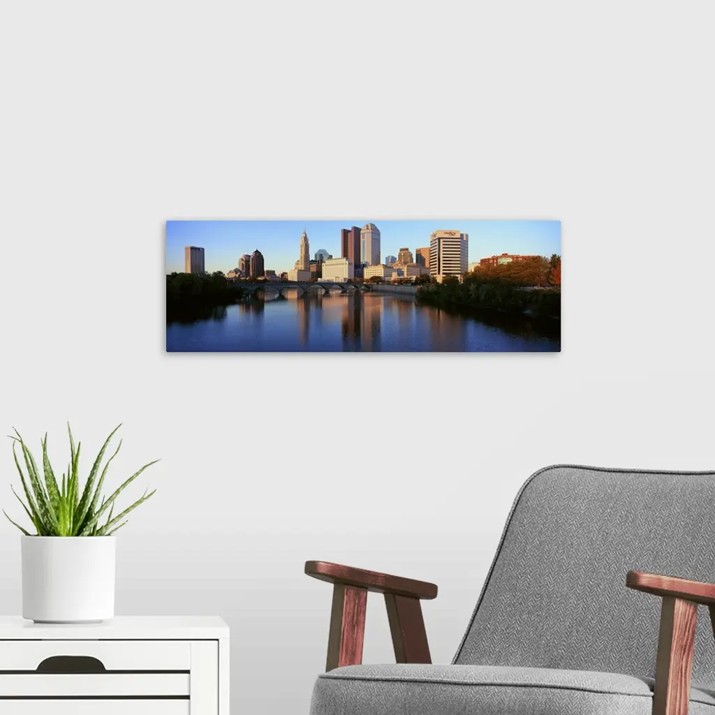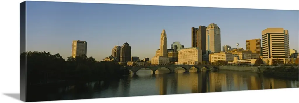 Scioto River And Columbus Ohio Skyline, With Setting Sunlight