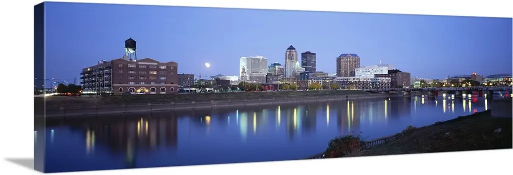 Scioto River and Columbus Ohio skyline, with setting sunlight