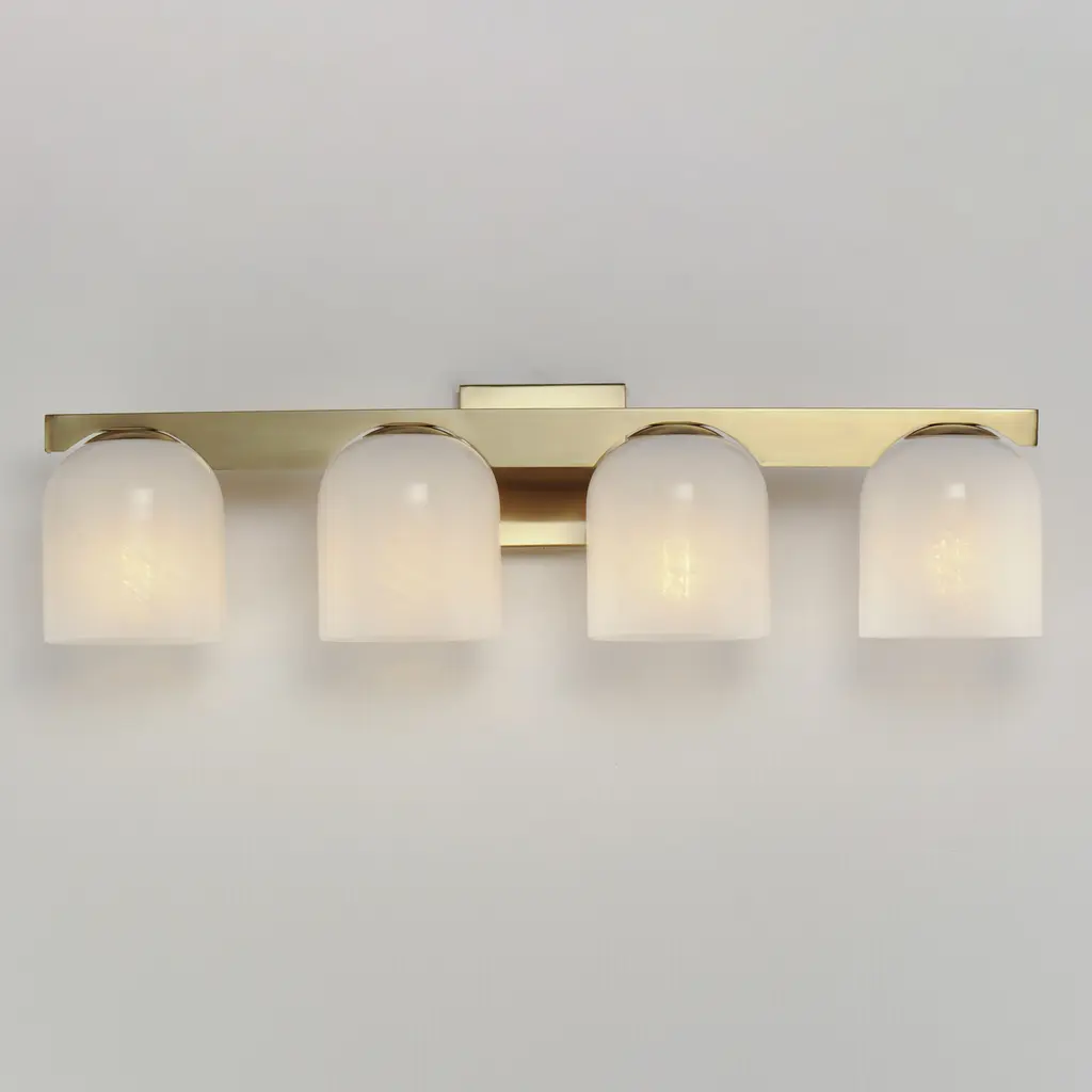 Scoop 4 Light 29.5 Inch Natural Aged Brass Bath Vanity Wall Light In Marble