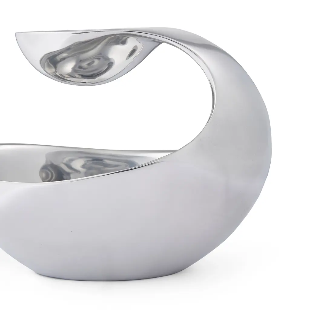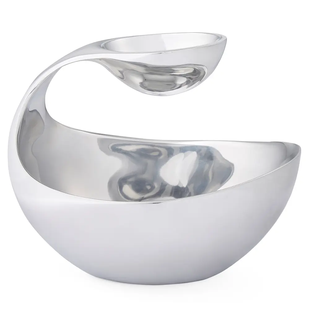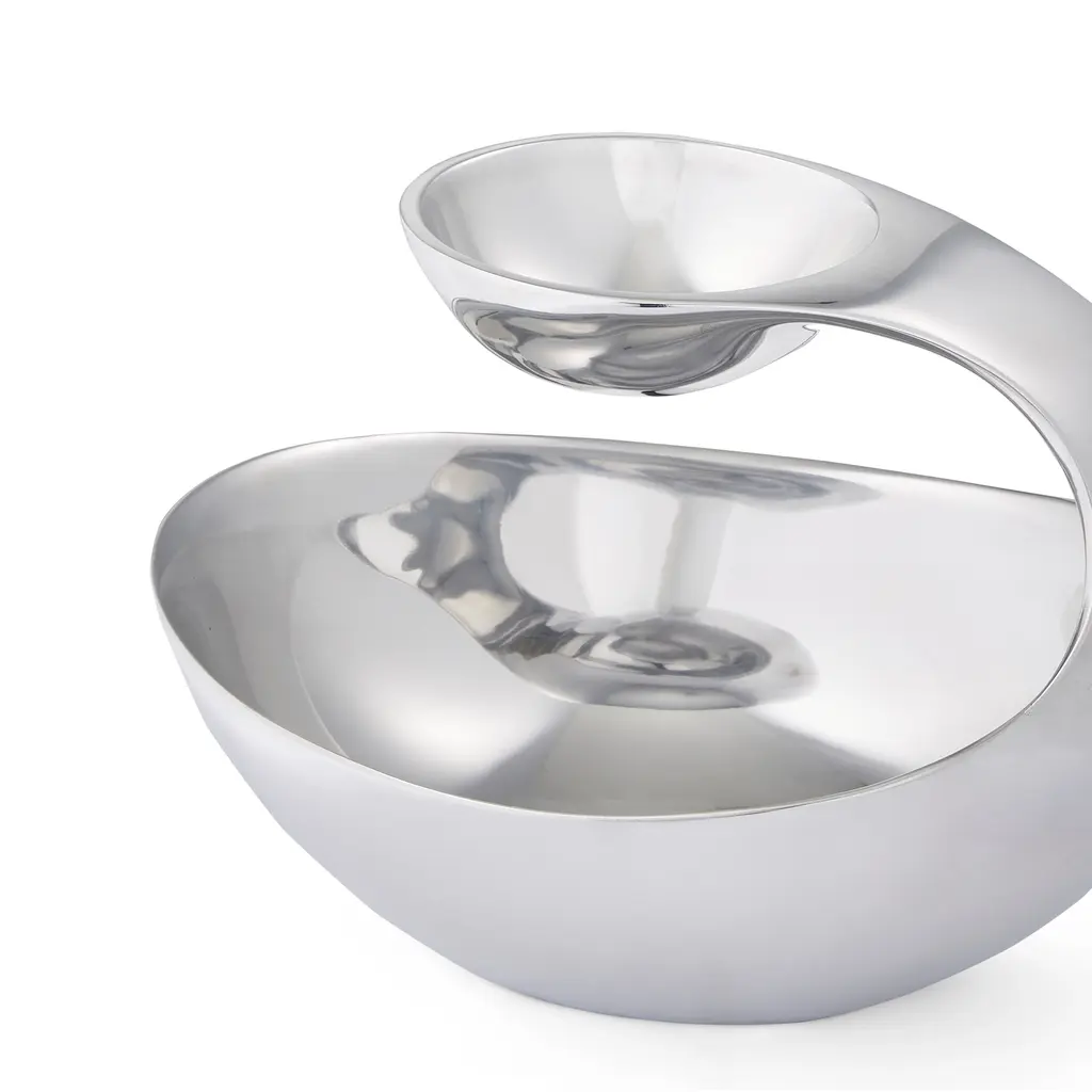 When you serve your guests with this modern, two-tiered piece in metal alloy, you're also serving up a conversation-starter. A smaller vessel hangs over the larger bowl in agraceful arc, allowing for easy, all-in-one-place dipping. Place chips and salsa, vegetables and guacamole, or virtually any other gastronomic pairing in this swan-like server, and wait for the inevitable compliments. When your friends have gone home for the evening, fill the bottom with stones and place a tea light in the upper bowl for an elegant non-mealtime look.