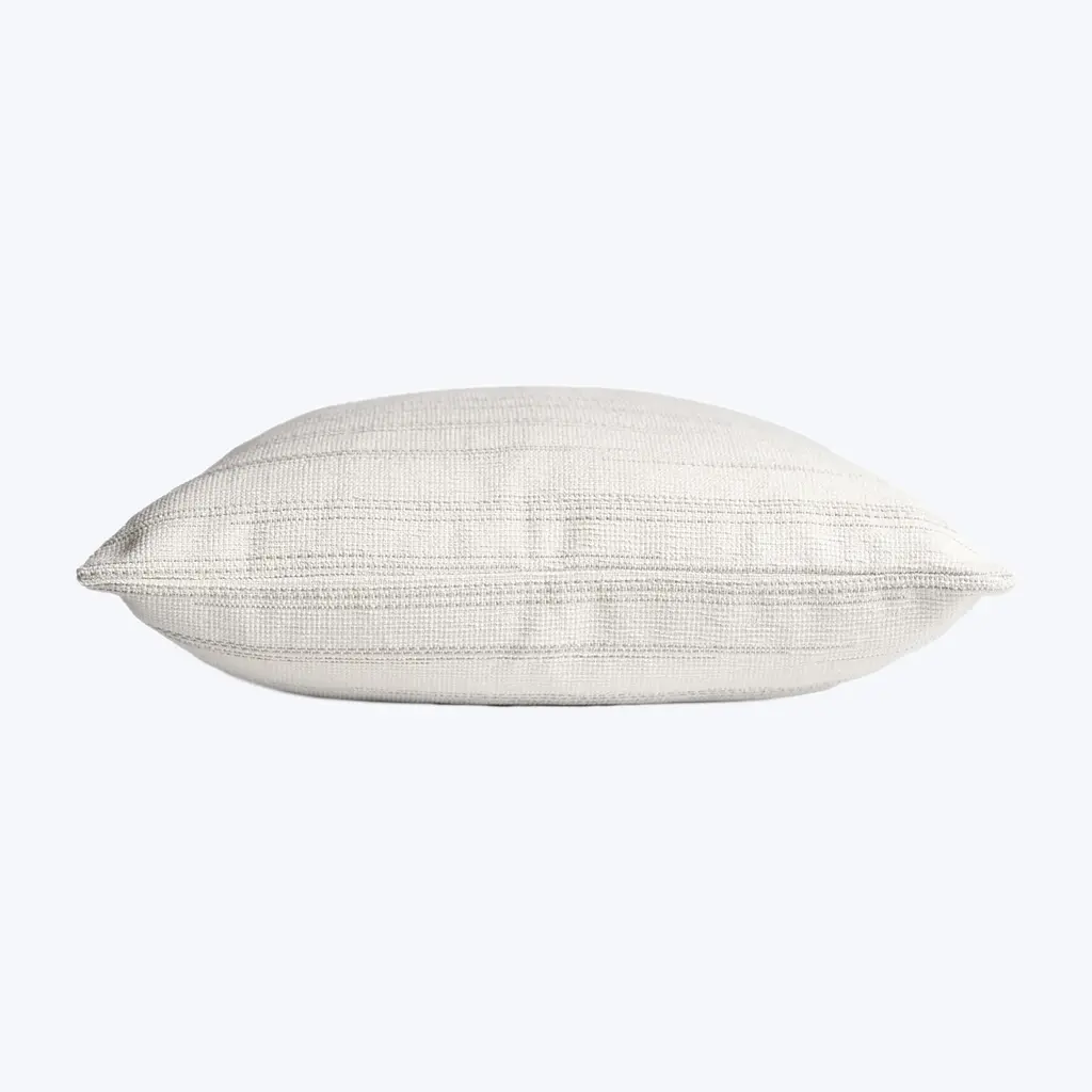 A study in timeless elegance, the Score Performance Pillow Pebble by Kevin O’Brien Studio brings a touch of coastal sophistication to refined outdoor spaces. This elevated pillow is handcrafted in weather-resistant performance fabric, designed for softness as well as everyday use. Made in the USA. See also the lumbar edition.
