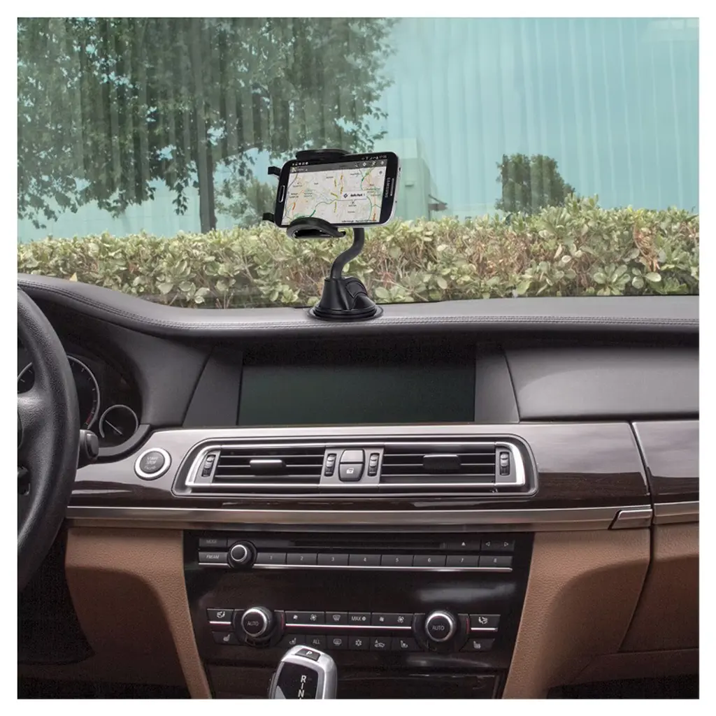 The stuckUP conveniently allows you to mount your iPhone, smartphone, GPS and more to your window, dash, vent or console. Vent clips safely secure your device to air conditioning vents. Clamping arms open to 4" wide to fit larger devices. Integrated suction cup easily attaches to any windshield. Includes mounting disk with 3M adhesive for console and dash. 360 degree swivel allows for vertical and horizontal viewing angles. Push button release allows for easy access to your device.