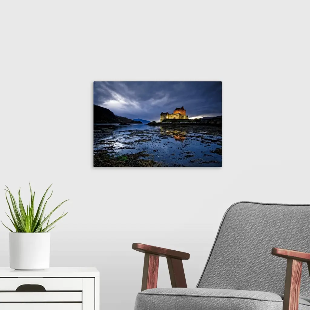 Scotland, Highland, Great Britain, Highlands, Dornie, view of the castle wall art for home and office decor. Discover canvas art prints, photos, mural, big canvas art and framed wall art in GreatBigCanvas.com's varied collections.