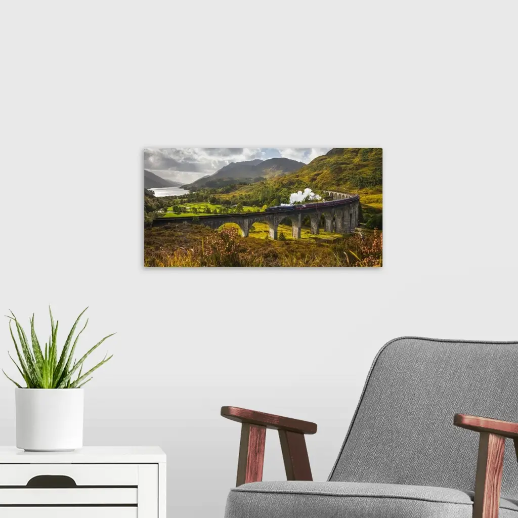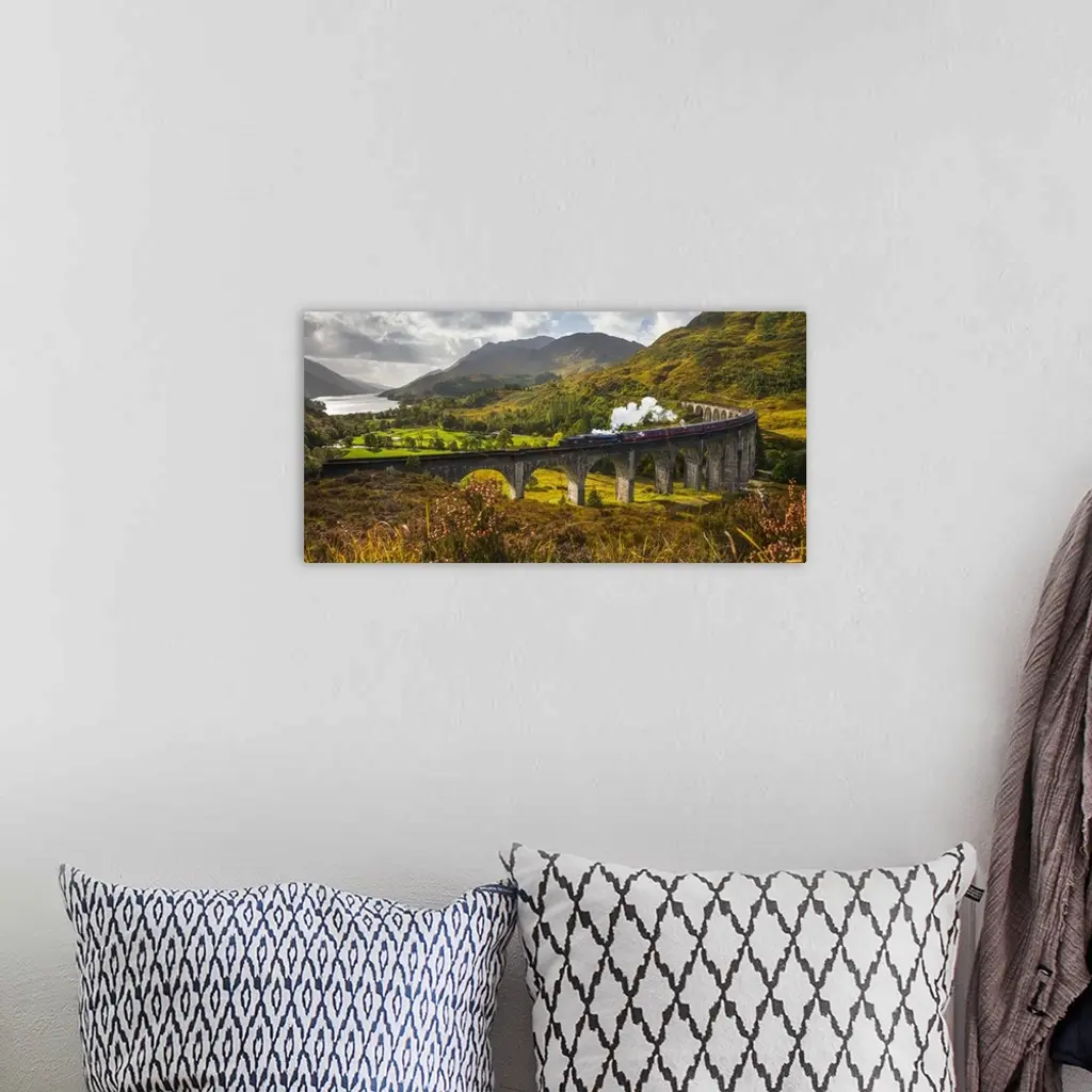 UK, Scotland, Highland, Loch Shiel, Glenfinnan, Glenfinnan Railway Viaduct, part of the West Highland Line, The Jacobite Steam Train