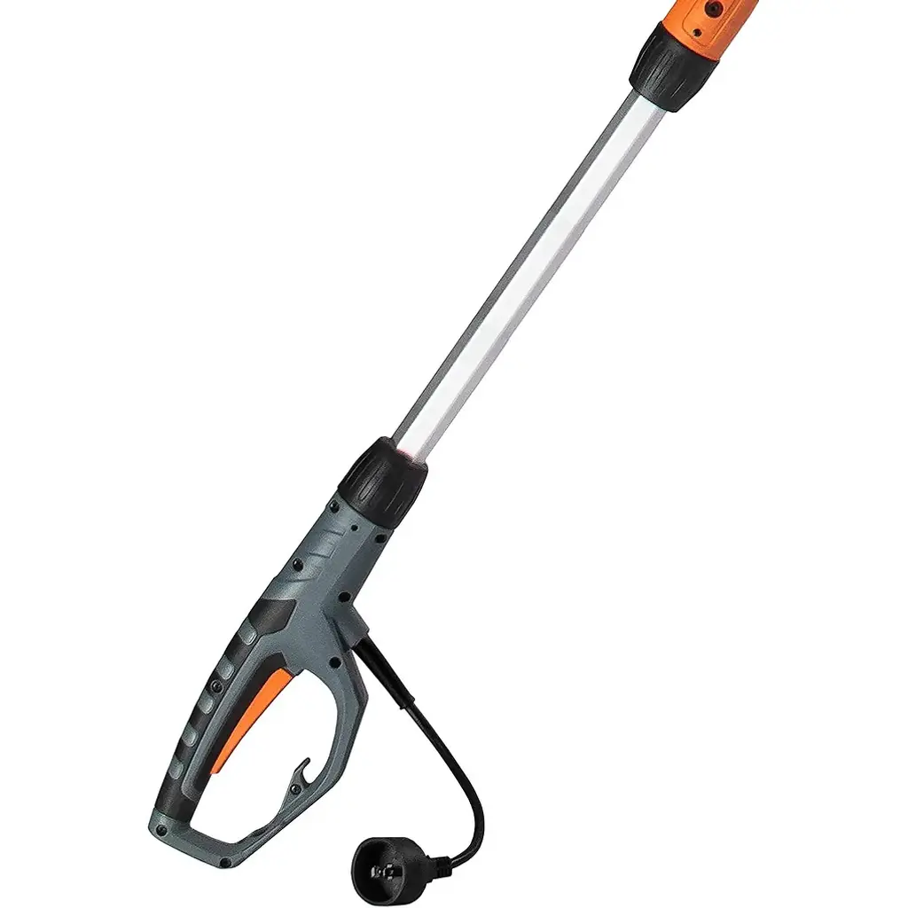 Make yard work easier with the Scotts Corded Pole Saw. This electric saw features a 10" Oregon bar and chain, lightweight fiberglass pole, and an adjustable head for convenient straight, 15-, and 30-degree angles. With a powerful 8 Amp motor, you can easily trim overgrown branches without the need for a ladder. The automatic oiling system keeps the bar and chain lubricated so you can keep working without interruptions.Features: