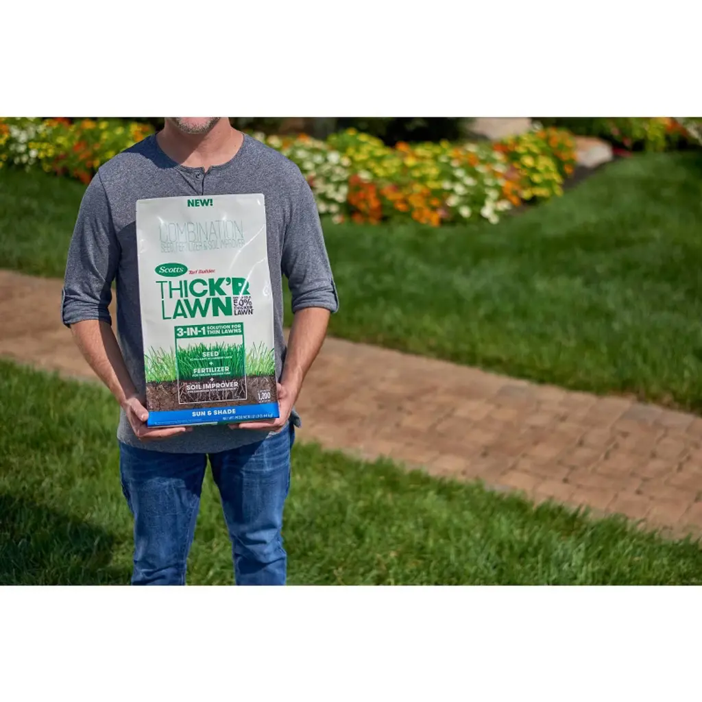 Scotts 3-in-1 Thick'r Lawn Sun & Shade Soil: Soil Improver, Seed, Fertilizer, 50% Thicker Lawn