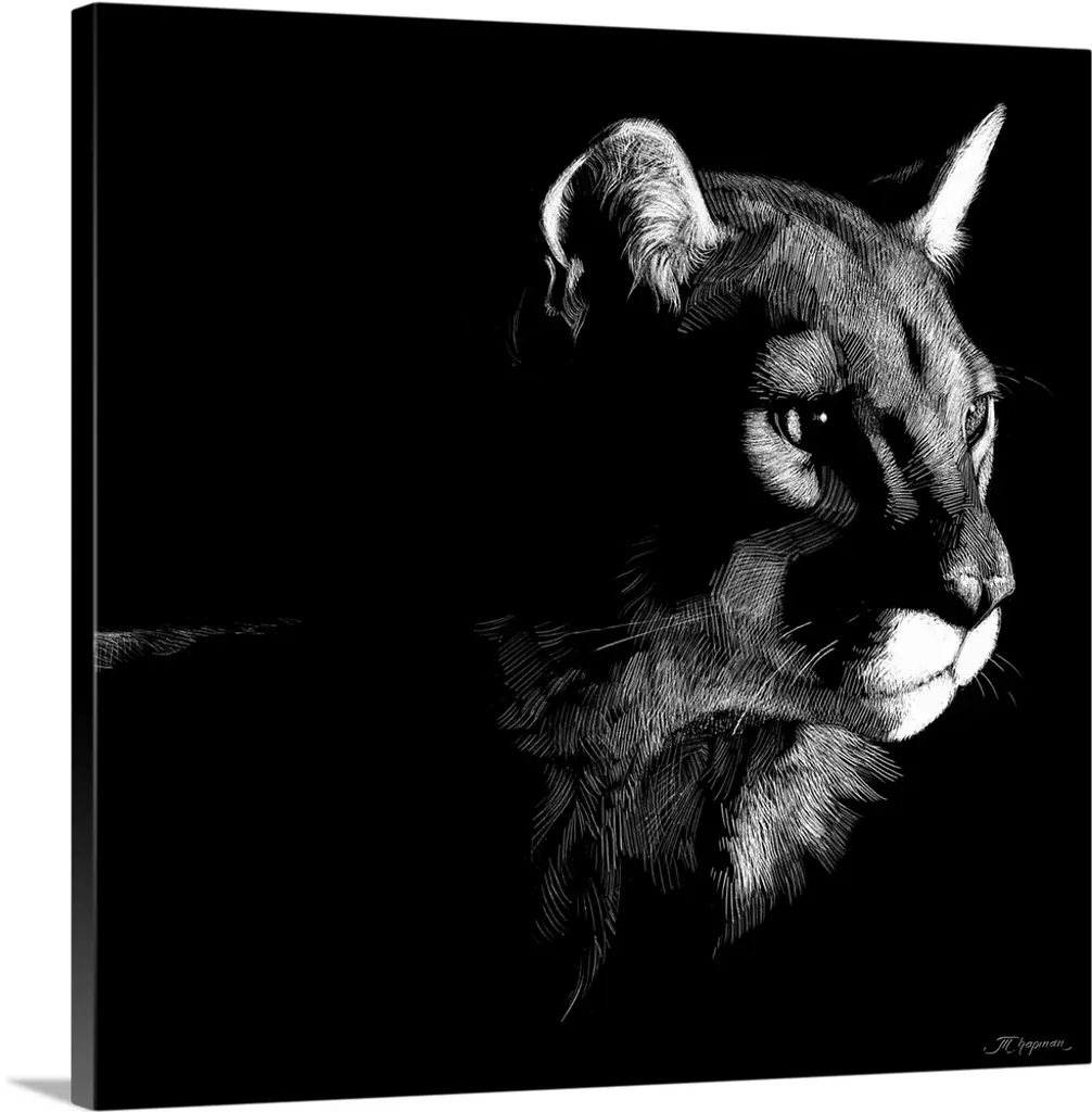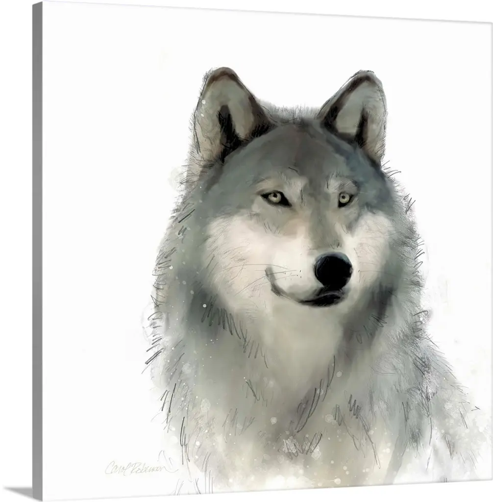 Black and white illustration of a wolf's face with intense eyes.