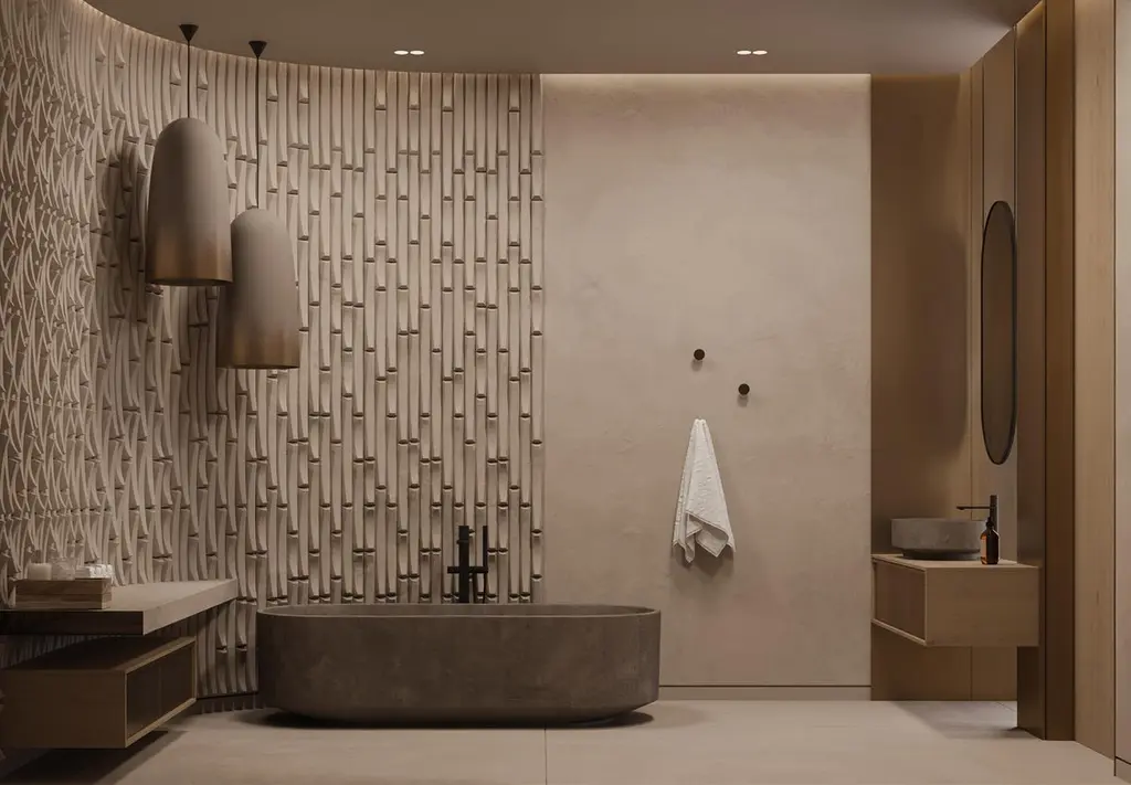 SCREE tiles from MAKHNO Product bring a unique touch of texture to any space they adorn. These ceramic tiles resemble gentle waves of water or sand, which seem to ebb and flow across the surface of the wall. The minimalist design of the tile ensures that the wall's surface appears both elegant and texturized, without appearing too heavy or cumbersome. The SCREE tile is perfect for those who want to add a subtle touch of texture and visual interest to their walls without overwhelming the space. Whether used as a full wall covering or as an accent, SCREE tiles from MAKHNO Product are sure to impress.