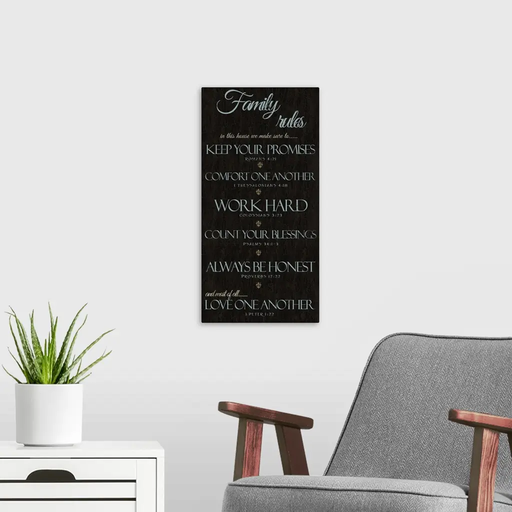 Scripture Family Rules wall art for home and office decor. Discover canvas art prints, photos, mural, big canvas art and framed wall art in GreatBigCanvas.com's varied collections.