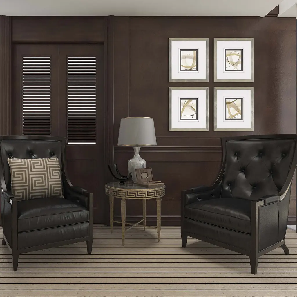 Scroll Series Metallic And Brown And Beige And Neutral Framed Art, The Studio