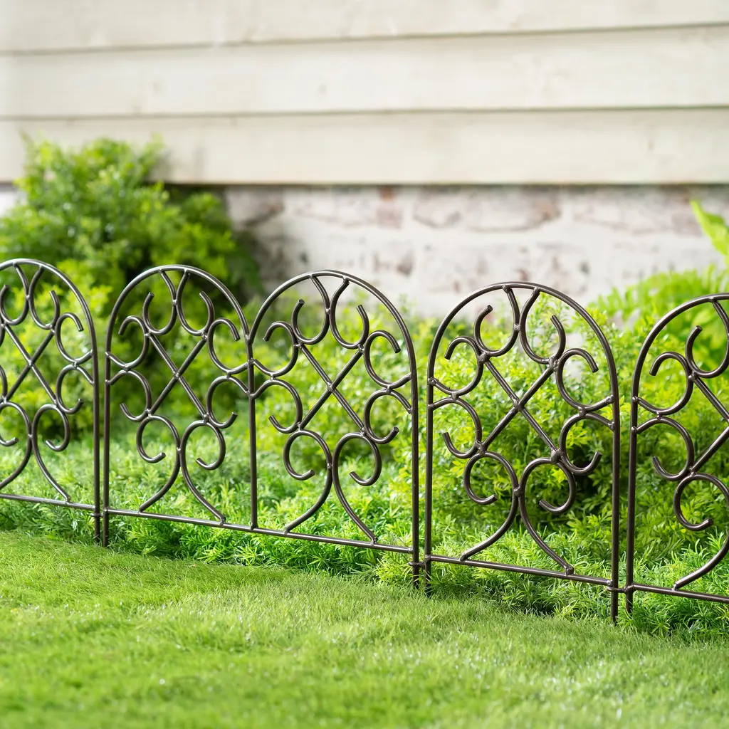 Scrollwork Wrought Iron Edging With Ground Stakes And Gunmetal Finish