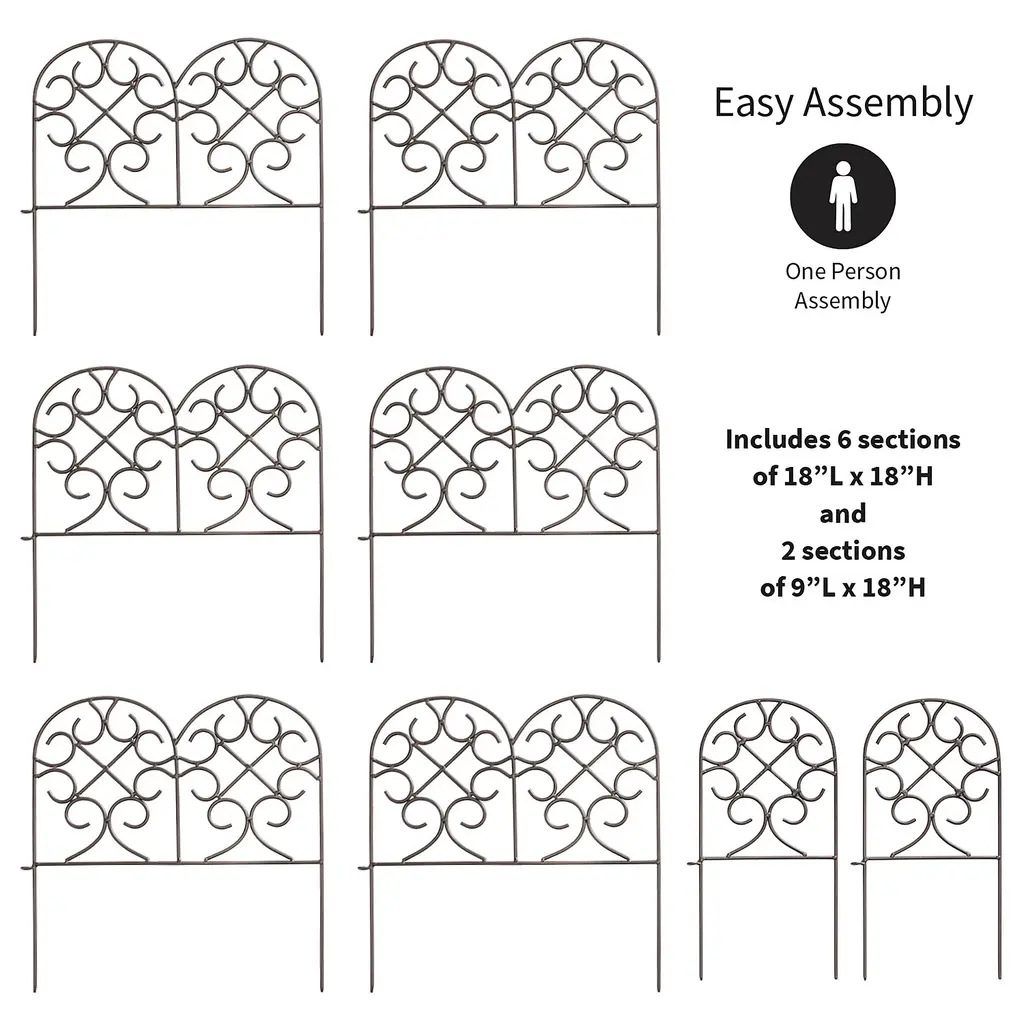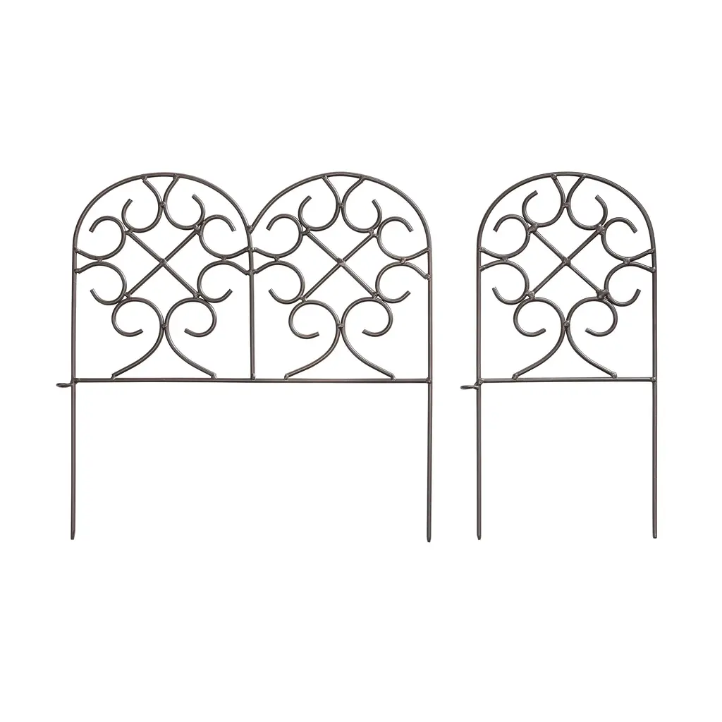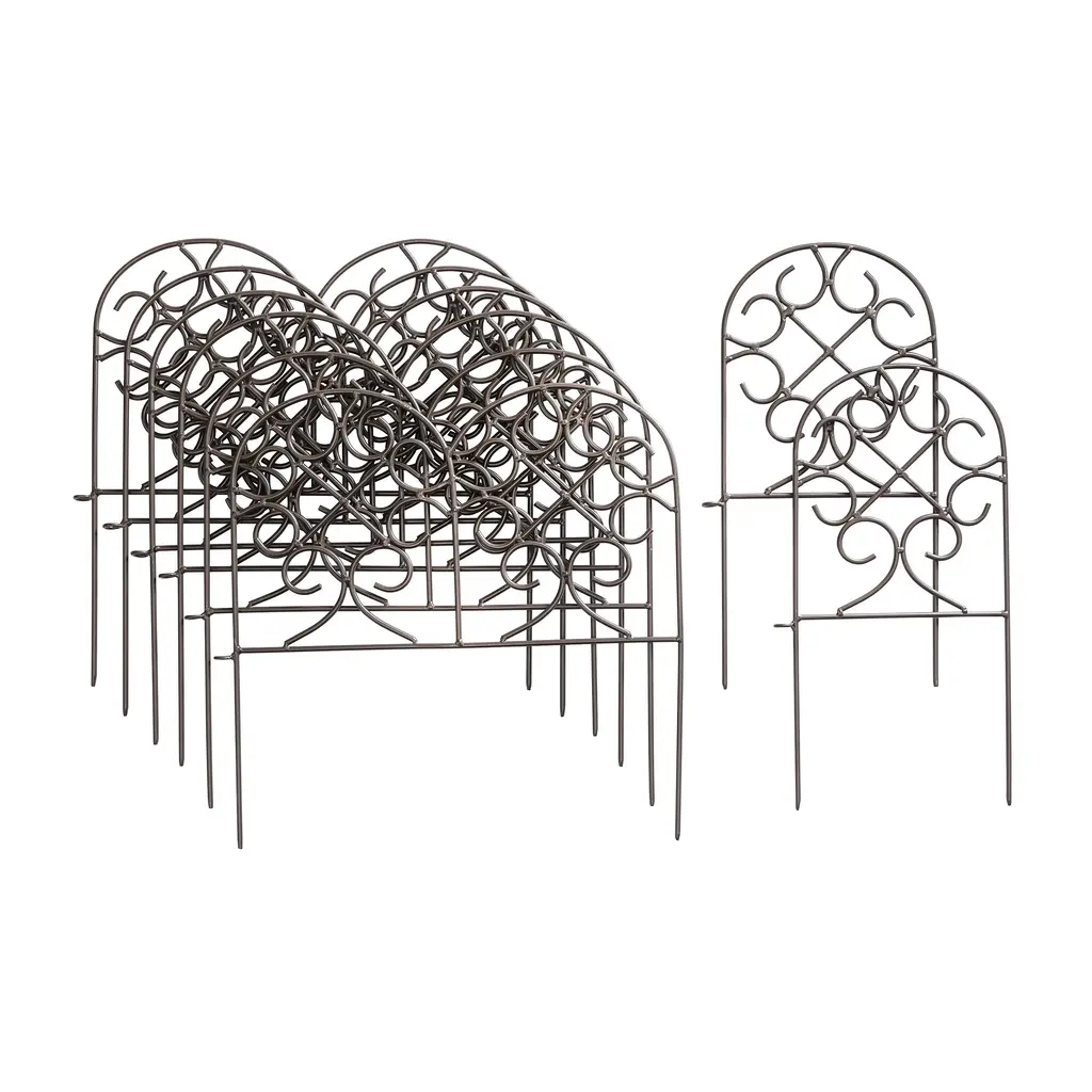 Wrought-iron edging is a pretty and practical addition to your garden or flower beds. The easy-locking ring system allows for flexibility around curves and corners. Reminiscent of the wrought iron fences and gates of New Orleans' Garden District, this edging set is perfect for beds, borders, walkways. Durable gunmetal-colored powder-coat finish is long-lasting and attractive. Attached 6"L stakes simply push into the ground.