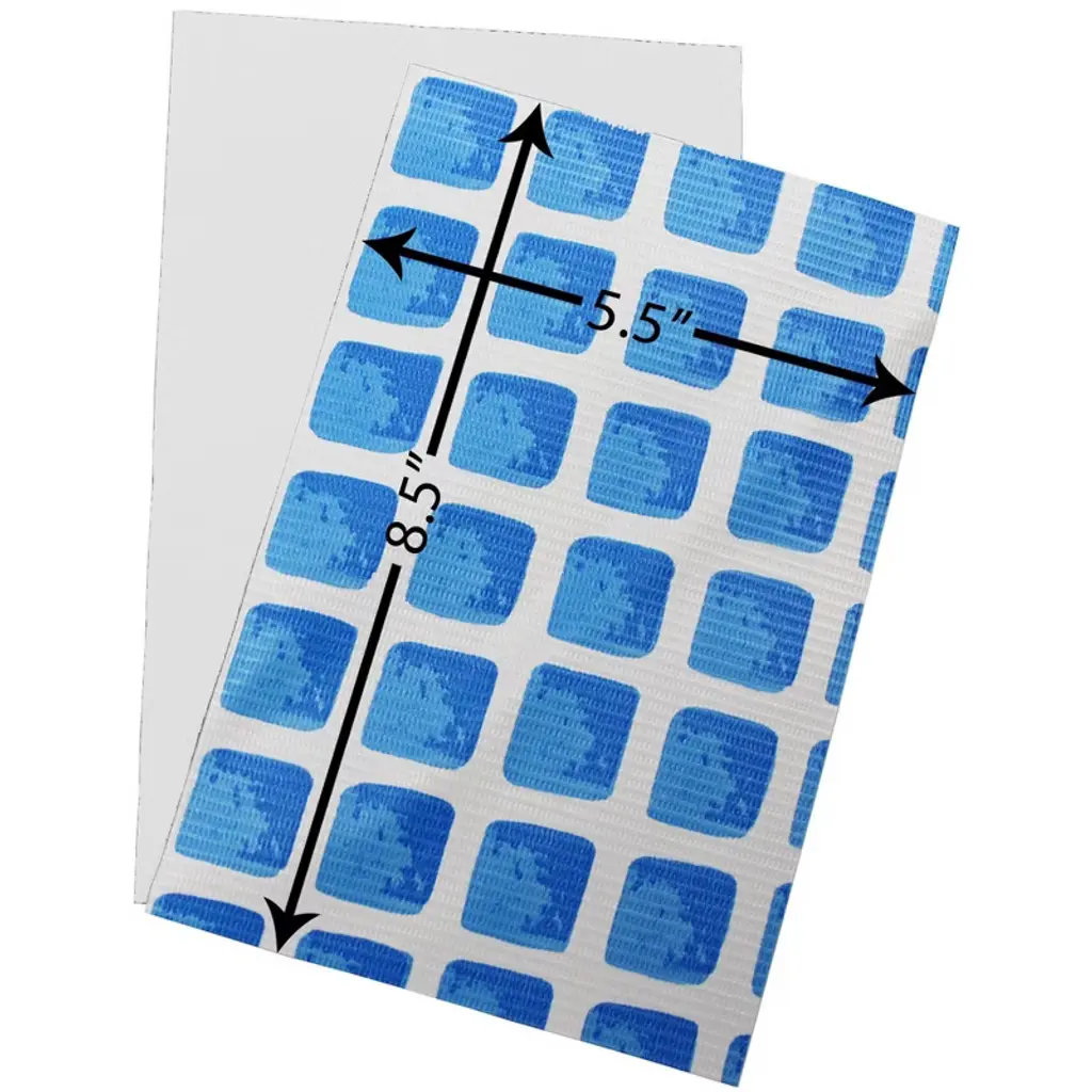 Introducing Scuba Patch, the revolutionary solution for instant heavy-duty pool repairs. Dive into a stress-free pool maintenance experience with this insanely sticky adhesive patch! Designed to instantly adhere to the inside of your pool liner - even underwater - Scuba Patch ensures swift, effective repairs without draining your pool. Its robust formula defies UV rays, making it a go-to for patching up pool liners with ease. Say goodbye to messy glue kits, draining pools, 24 hour downtime and reoccurring leaks – Scuba Patch keeps your aquatic haven pristine and ready for enjoyment. Trust the power of Scuba Patch to keep your pool in shipshape condition, making waves in the world of underwater repairs. The Scuba Patch kit by Pool Above includes 2 heavy duty vinyl 5.5"x8.5" rectangle shaped patches for your pool liner. They can be used on the inside and the outside of your pool liner. Includes two heavy duty pool print patches. Recommended age 14+ Underwater Application Instructions:1. Wipe the surface clean.2. Peel the backing off of the Scuba Patch3. Center the patch over the hole and stick.