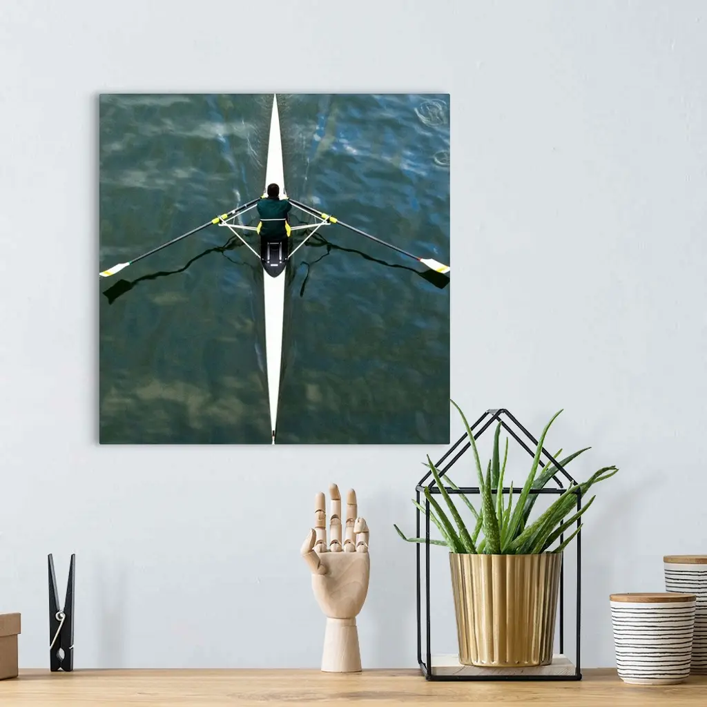 Scull man square river Seine reflections water rowing wall art for home and office decor. Discover canvas art prints, photos, mural, big canvas art and framed wall art in GreatBigCanvas.com's varied collections.