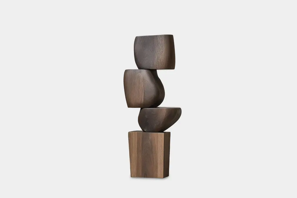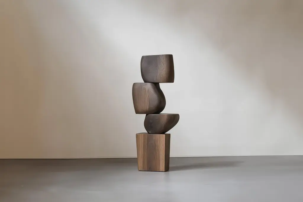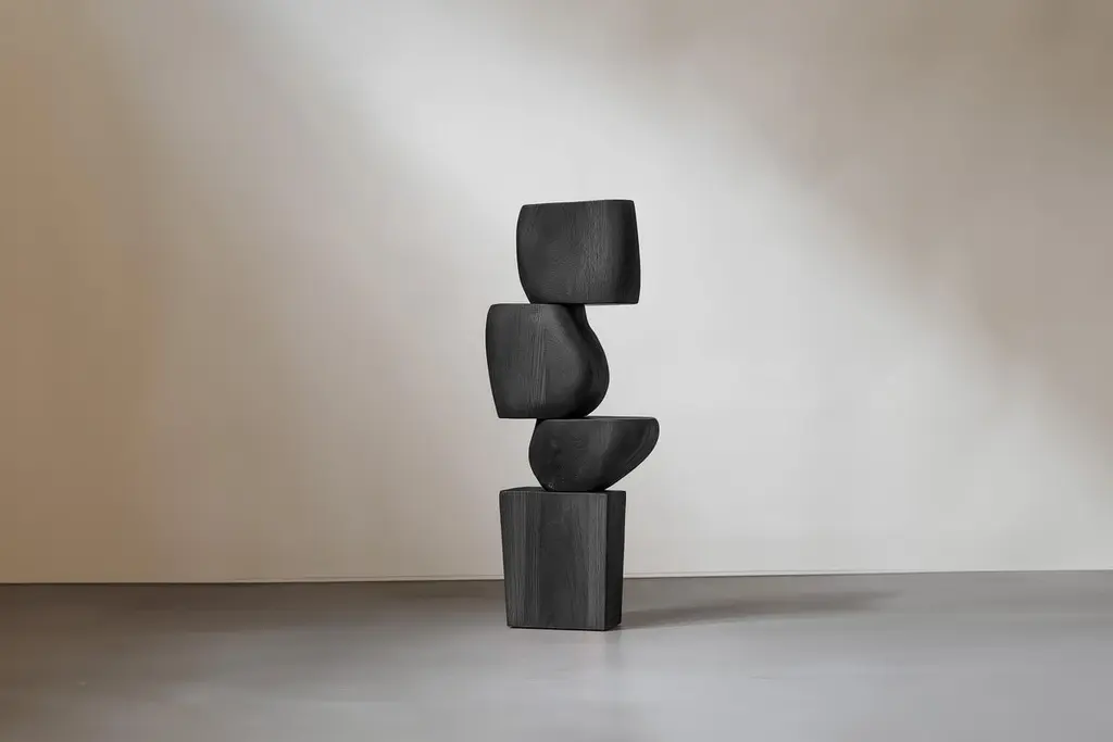 Sculptural Accent for Contemporary Spaces – Lull No4 by NONO———Balance and tension are at the core of these sculptures. The interplay between the smooth, rounded forms and solid, angular bases creates a delicate equilibrium that invites contemplation. Fragile elements seem to find strength in their very vulnerability, constantly negotiating their own stillness. The tension remains present, yet never descends into chaos, evoking a quiet pause, a moment of serenity in the motion of life.The juxtaposition of curved, pebble-like shapes against straight-edged bases mirrors the harmony between the organic and the geometric. These forms feel both natural and sculpted, as though shaped by the slow, deliberate hand of nature and the precision of craftsmanship. It’s as if these pieces rest in a moment of perfect balance—a pause between forces that seem at odds, yet together, create something deeper and more profound.This collection embodies a monumental idea—one that celebrates the subtle tension between fragility and endurance. Though the forms may appear delicate, their strength lies in resilience. Each sculpture stands tall and quietly powerful, offering a sense of solace in stillness, a reminder that stability can emerge from the most unlikely structures.These pieces explore the delicate dance between opposing forces, where solace and tension coexist in harmony. The most meaningful moments in life often come from these pauses, from embracing the quiet spaces between movement. These sculptures whisper a truth—that transformation often finds its roots in stillness, in the spaces between tension and release.Each sculpture is crafted from solid wood in our workshop in Mexico City, ensuring no two pieces are ever alike—not only in form, but also in the natural texture and tone of the wood itself. Just as no two trees are the same, each piece carries its own unique character, shaped by the grain and color variations of the wood. This natural diversity is what makes each sculpture truly one-of-a-kind. These works are made to order, allowing the time and care needed to ensure that every piece reflects its own individuality and beauty, celebrating the organic and the serene pause within the material.——NONO is a Mexican design brand with more than 10 years of experience dedicated to the production of interior furnishings, editions, and custom-made projects. At NONO, we create pieces of extraordinary beauty, accommodating the particular needs and tastes of each client with exclusive high-quality designs.————Some details to consider when placing an order with us:• Catalog images are digitally generated. Actual products may slightly vary in texture, grain, and final finish due to natural material differences. Despite these variations, our expertise ensures each piece maintains high quality and matches the intended design.• All of our products are made to order, and the lead time for standard products is estimated to be 9 to 12 weeks, plus shipping time. However, special pieces or sculptures may require a longer lead time.• We offer customization in dimensions and finish for all of our furniture pieces, which may result in additional charges.• We only facilitate freight services by a third party. The client is solely responsible for any associated import/export taxes, as well as any necessary customs paperwork.• We are not responsible for any damages that may occur during shipping or for any customs-related delays.